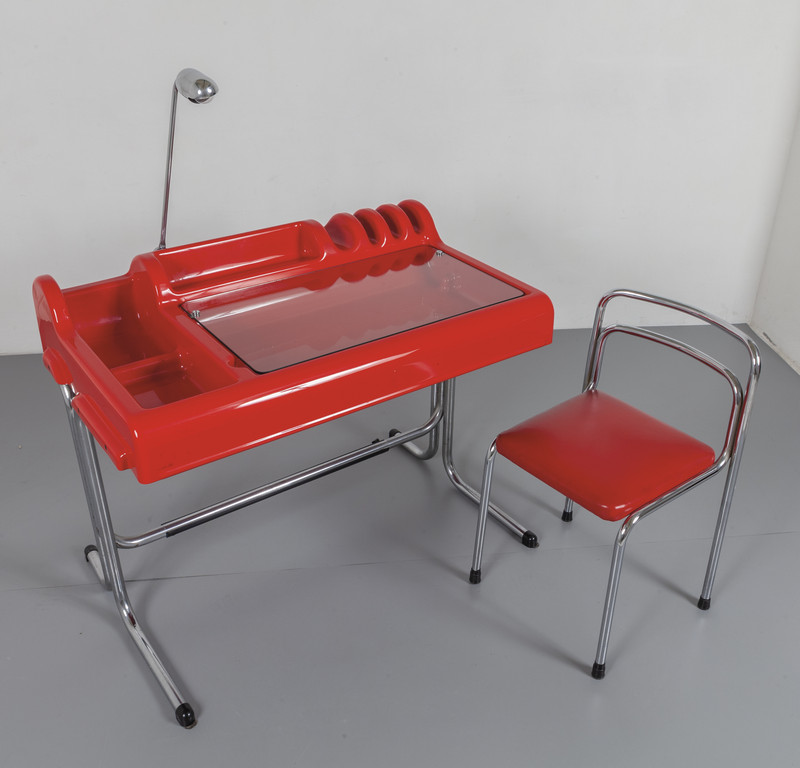 Uno scrittoio 'Orix' e una sedia per MOLTENI & C., 1971.