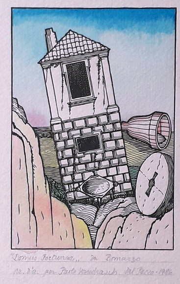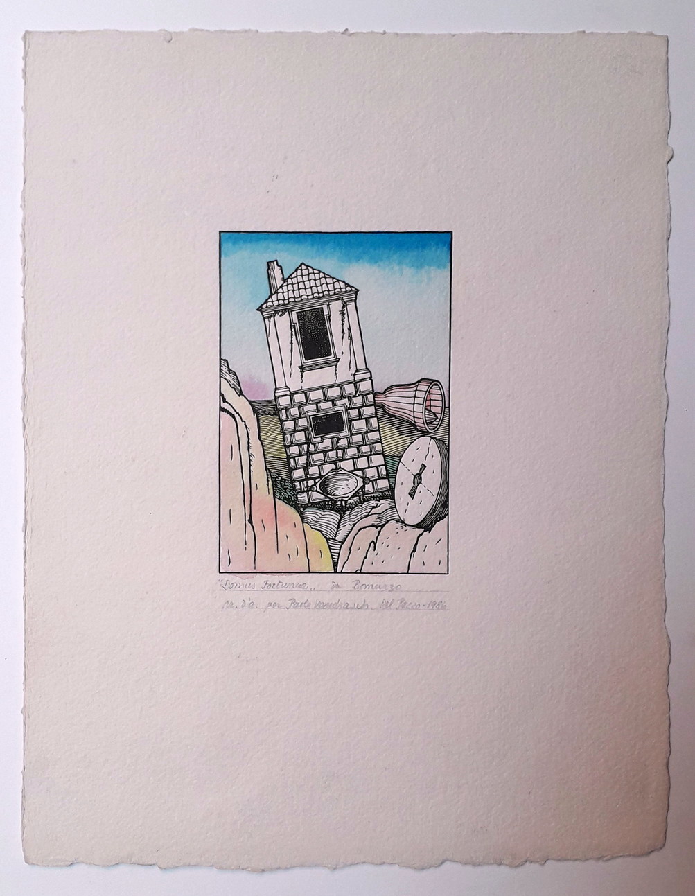 DEL PEZZO LUCIO Napoli (Na) 1933 Domus fortunae 1986 Acquarello su cartoncino...