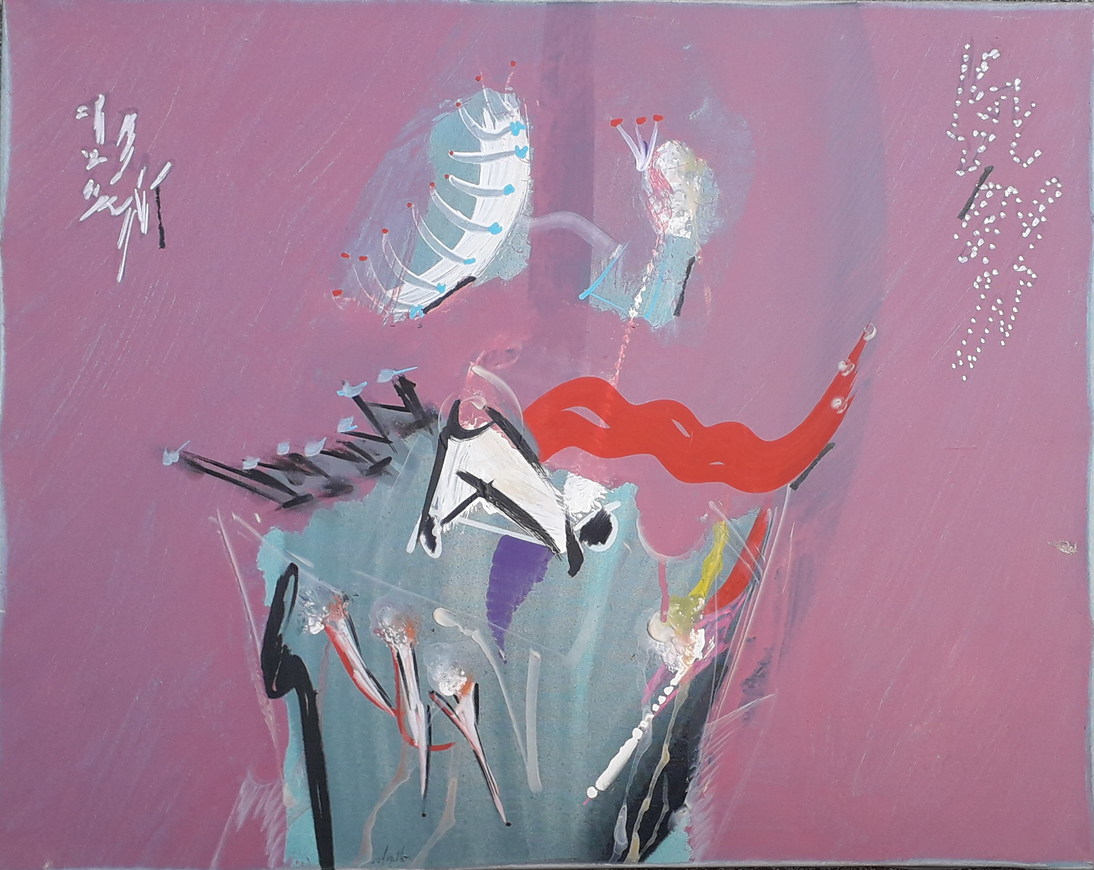 DANGELO SERGIO Milano (Mi) 1932 Imbandita per le mantidi Olio su tela...