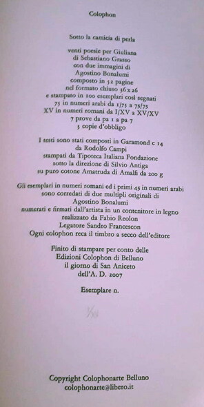 Lotto 94 | BONALUMI AGOSTINO Vimercate (Mb) 1935 Sotto la camicia di perle 2007...