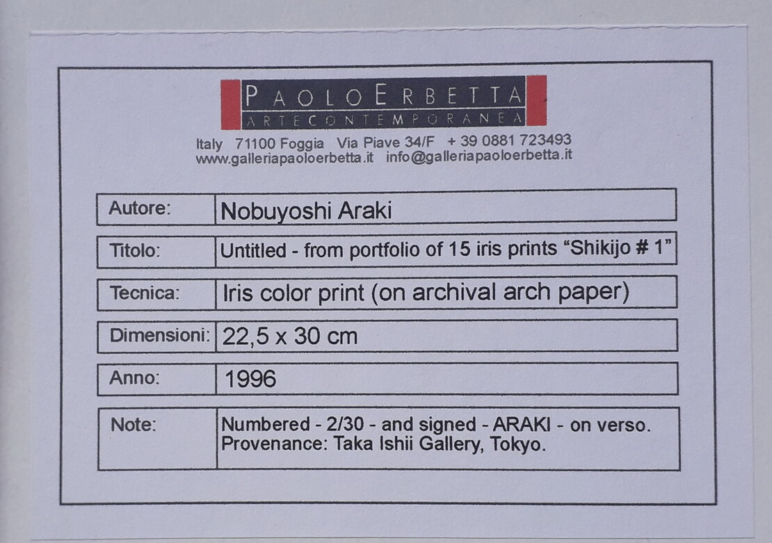 Lotto 107 | ARAKI NOBUYOSHI Tokyo (Giappone) 1940 Senza titolo 1996 Iris color print (on...