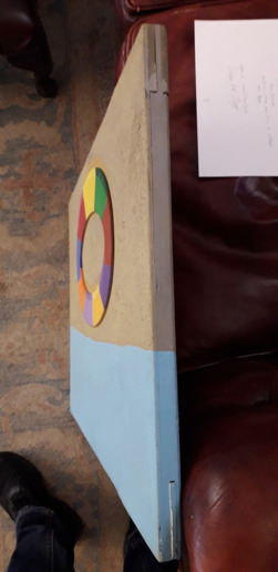 Sabbia, colore acrilico e collage su legno