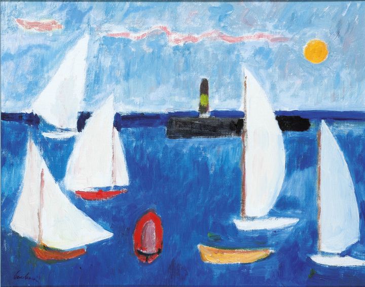 PAULUCCI ENRICO Genova 1901 - 1999 Torino "Vele" 40x50 olio su tela Opera...