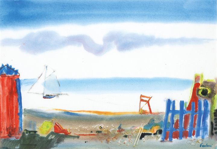 PAULUCCI ENRICO Genova 1901 - 1999 Torino "Spiaggia" 45x50 guazzo su carta...