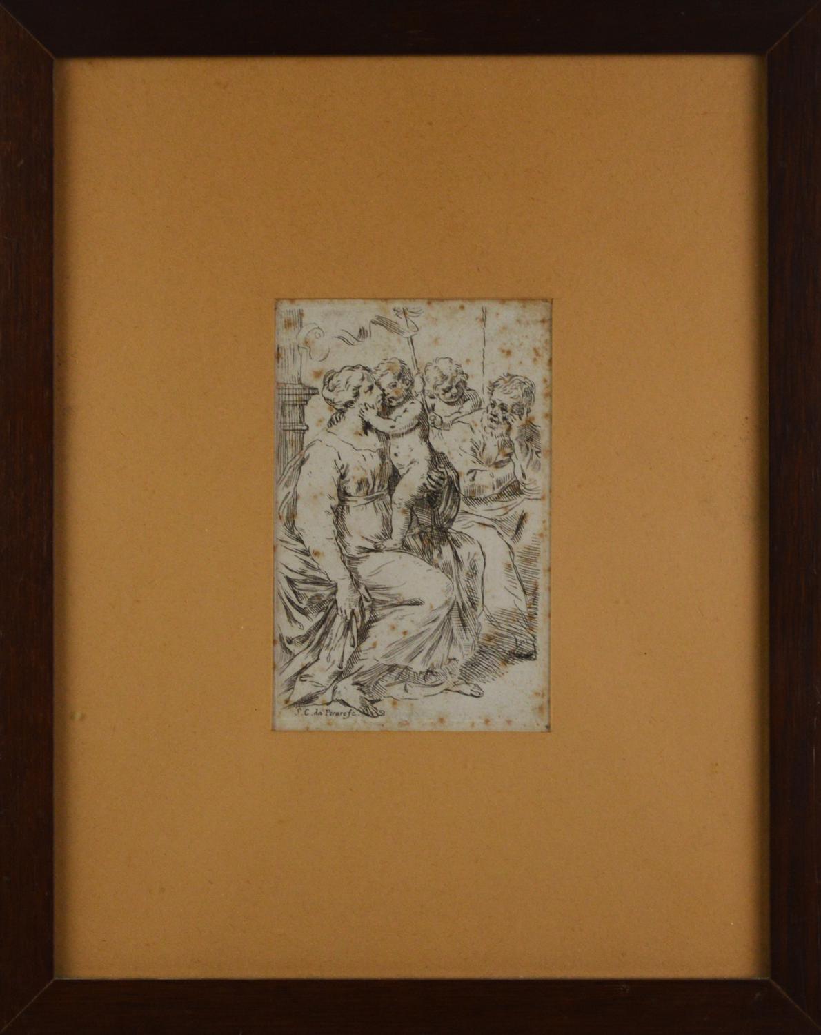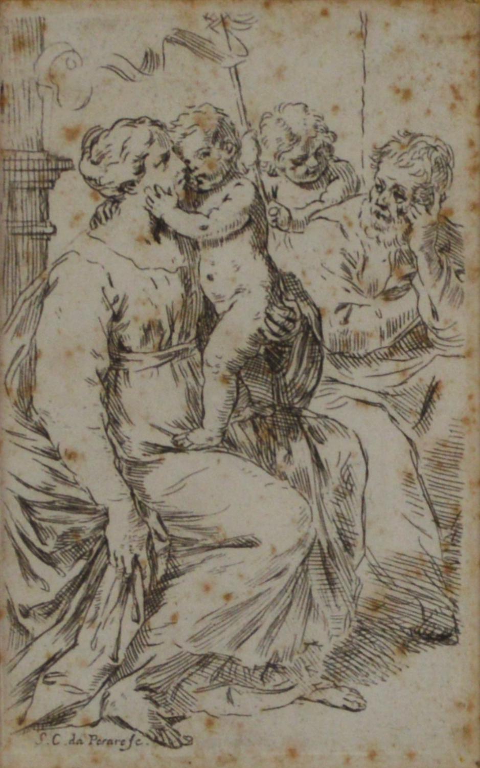 Simone Cantarini SACRA FAMIGLIA CON SAN GIOVANNINO acquaforte, cm 13,5x8,...