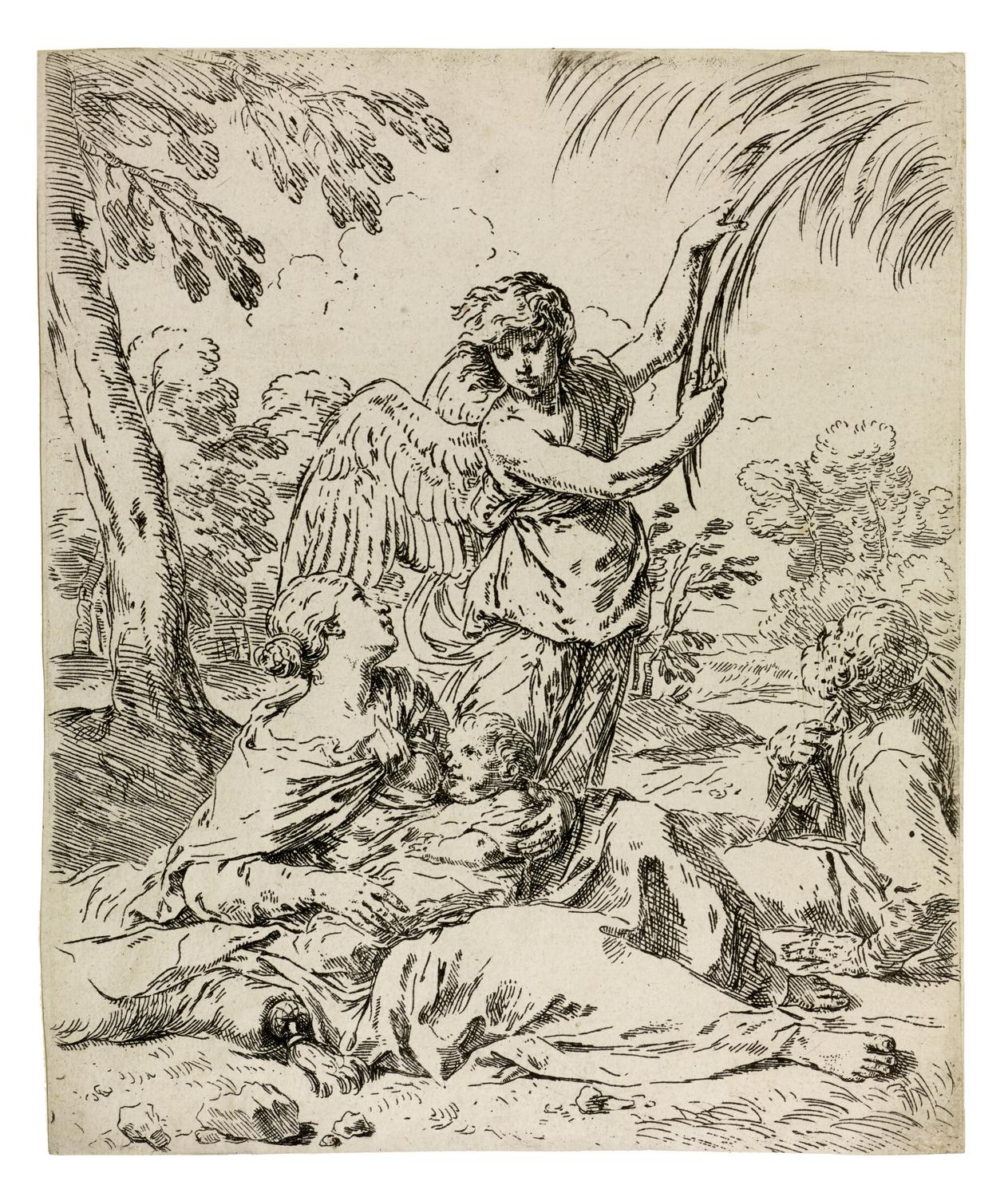Simone Cantarini RIPOSO NELLA FUGA IN EGITTO acquaforte, cm 20,9x17,5...