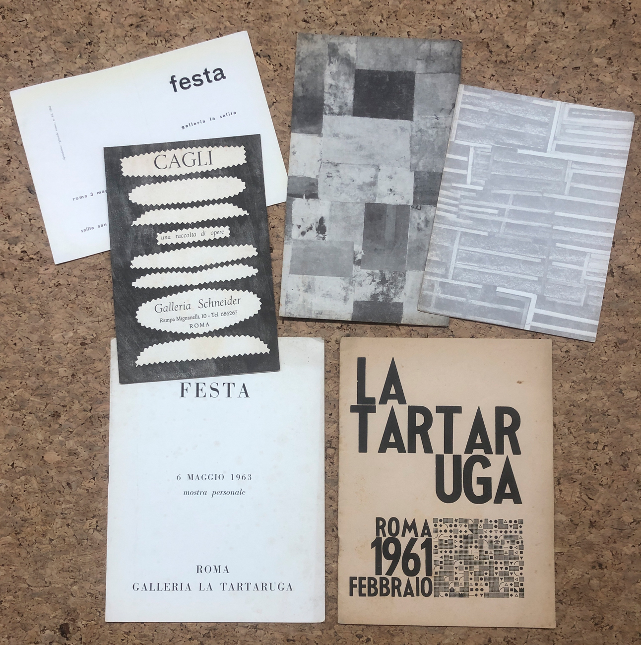 - Festa. Mostra personale. 6 Maggio 1963: catalogo illustrato edito in occasione dell'esposizione presso Galleria La Tartaruga, Roma, 1963