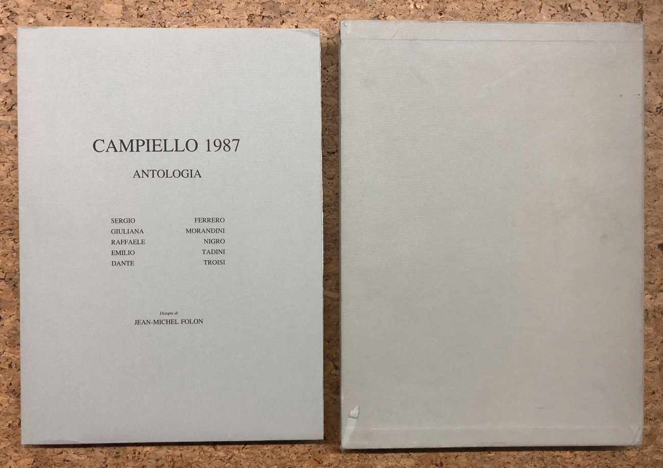 Volume contenente 5 fotolitografie di Jean-Michel Folon, ciascuna recante firma e datazione in lastra, e un'antologia di testi di Sergio Ferrero, Giuliana Morandini, Raffaele Nigro, Emilio Tadini e Dante Troisi