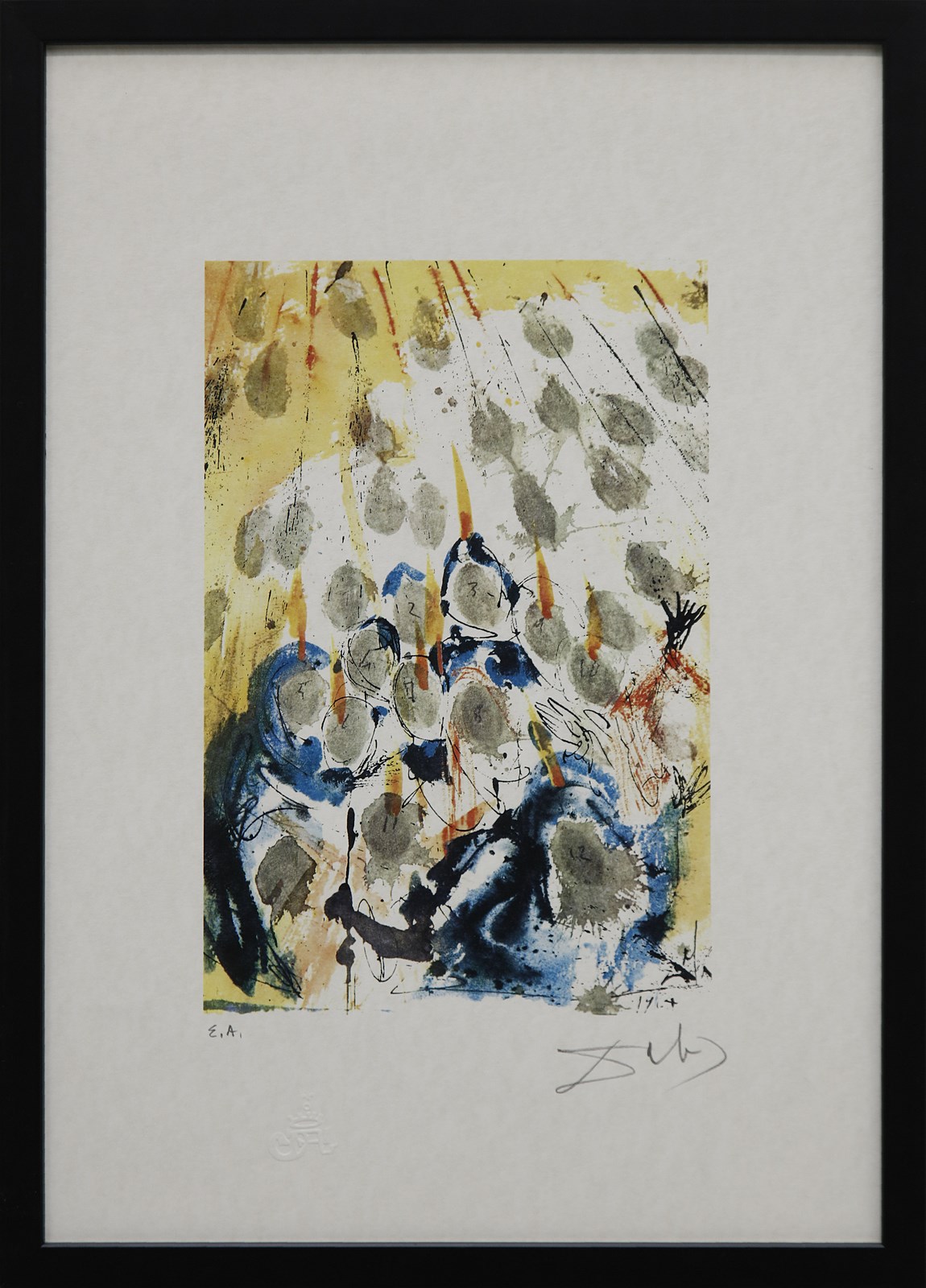 DALI' SALVADOR (1904 - 1989) Senza titolo. Litografia. Cm 32,00 x 45,00. E.A. Firma e tiratura in basso a matita. Edizioni Gaceta Espanola De Arte Contemporanea, Madrid. 24 esemplari marcati E.A. Dimensioni lastra: cm 28,5x19,6. Timbro a secco in basso a destra. Opera con cornice. Cornice presente