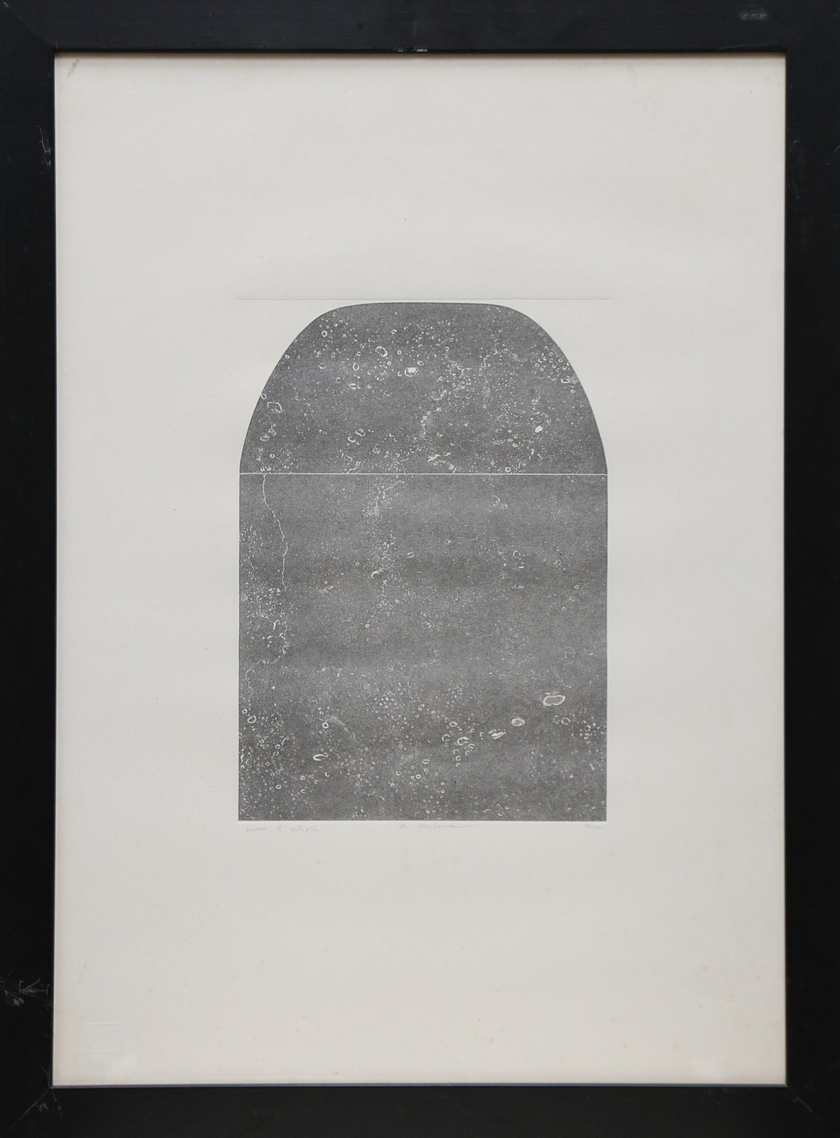 BURRI ALBERTO (1915 - 1995) Senza titolo. Acquaforte. Cm 50,00 x 70,00. P.d.a. Tiratura, firma e dedica in basso a matita. Dimensione lastra: 35x25 cm. Lievi difetti. Cornice presente