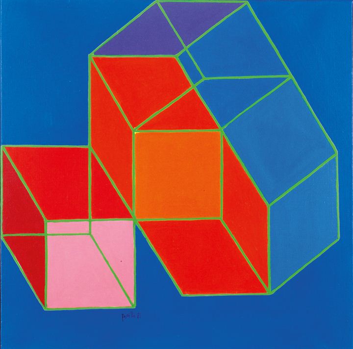 PERILLI ACHILLE Roma 1927 "Affluente" 1981 40x40 olio su tela Opera firmata,...