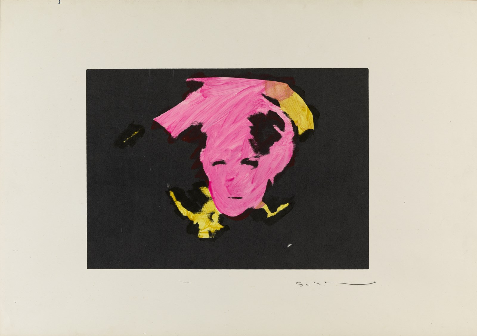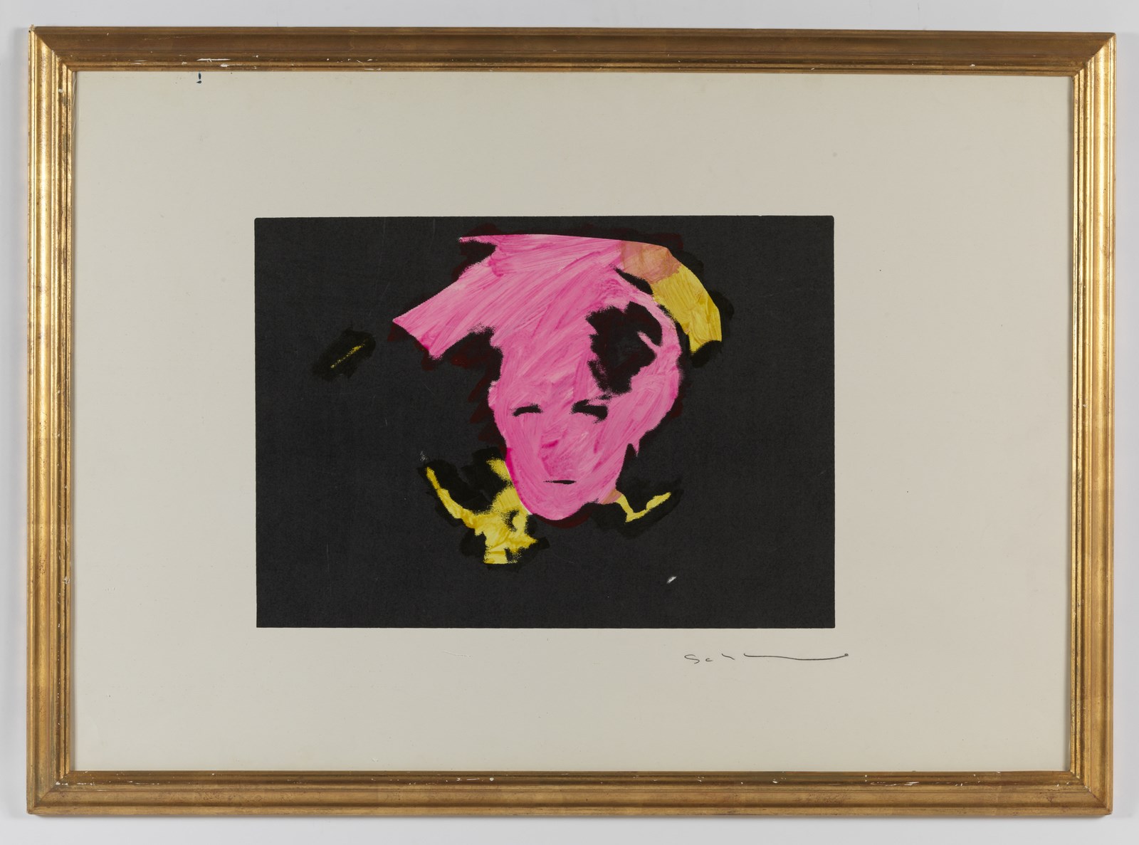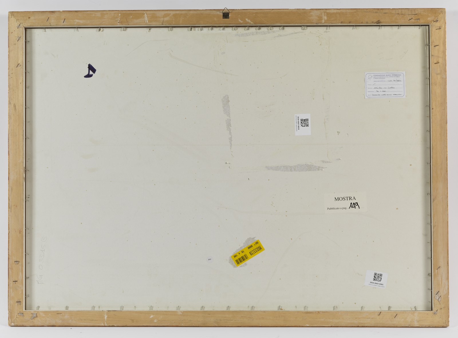 SCHIFANO MARIO (1934 - 1998) Senza titolo. Tecnica mista su carta. Cm 100,00 x 70,00. Firma in basso a destra. Opera archiviata presso la Fondazione Mario Schifano (25 Ottobre 2000) come da documentazione fotografica allegata all'opera riportante il relativo numero d'inventario. Seconda metà degli anni '70. Cornice presente