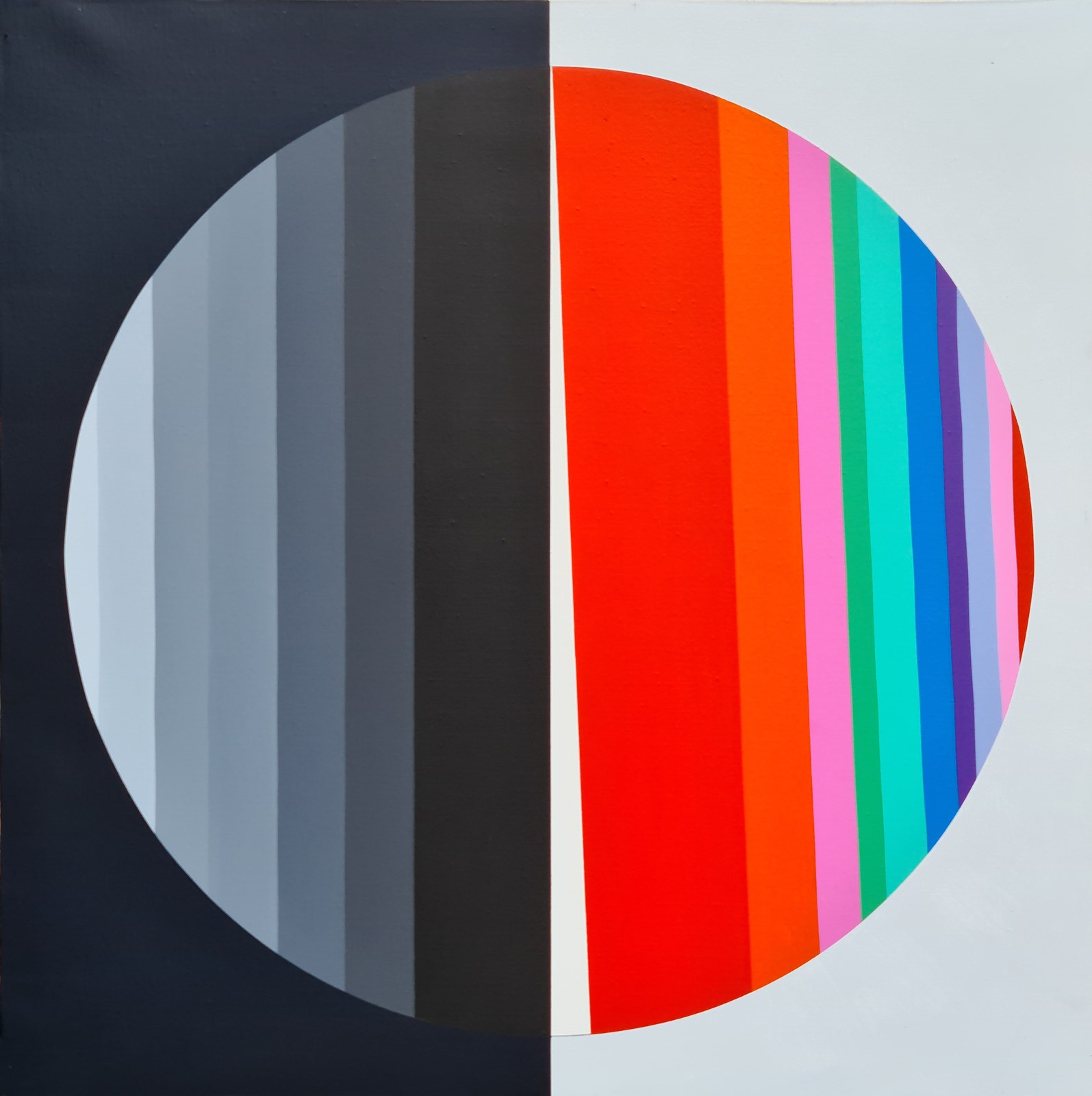 CARMI EUGENIO (n. 1920) 17 ore immaginarie. 1972. Acrilico su tela. Cm 80,00 x 80,00. Al retro titolo, anno e timbro della Galleria F.22, Palazzolo (Bs). Opera archiviata presso l'Archivio Eugenio Carmi come da documentazione fotografica allegata all'opera riportante il relativo numero d'inventario.
