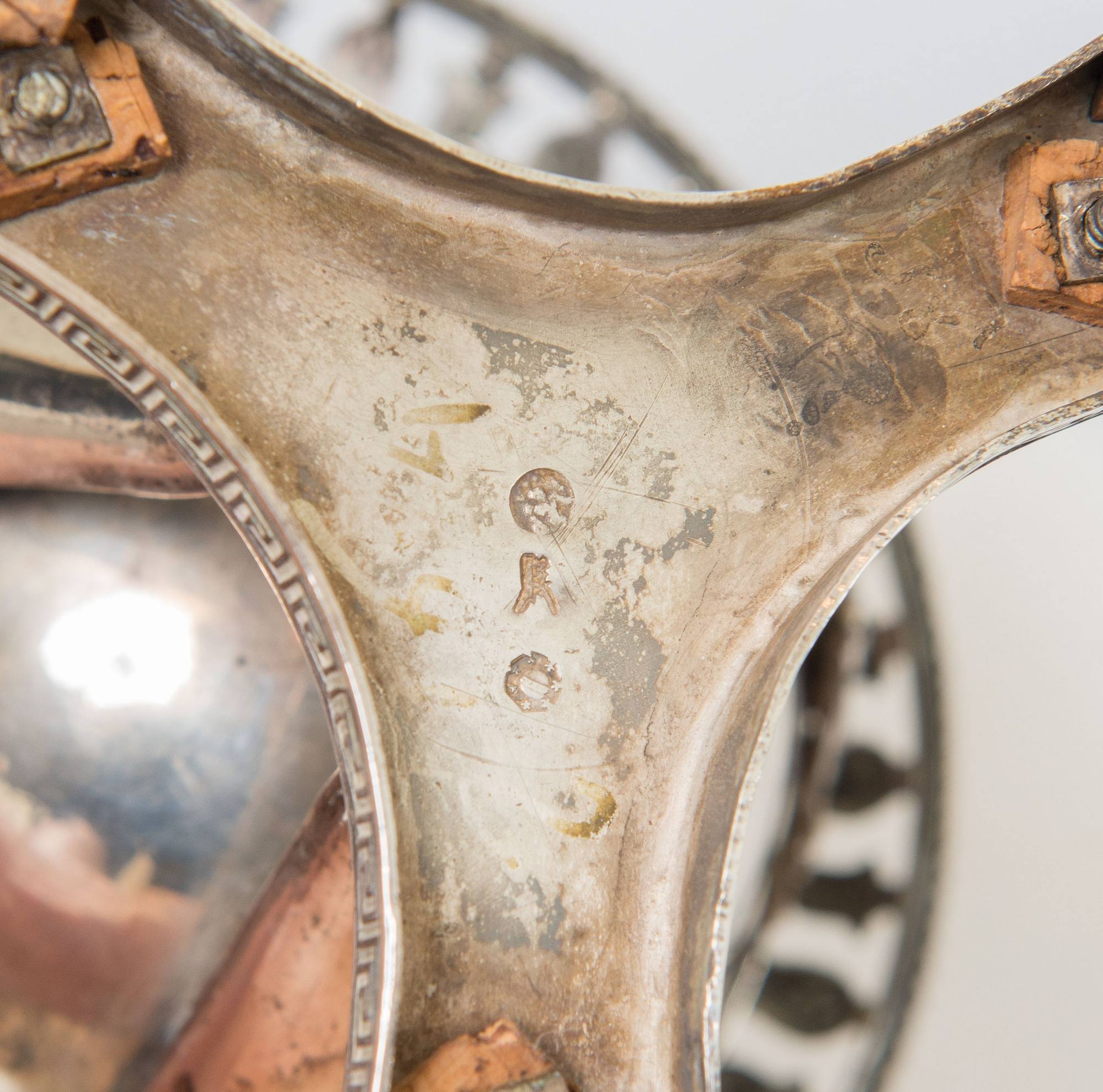 Alzata con cigno in argento 800. Sotto la base reca punzoni: ettagono, regno lombardo-veneto e un terzo parzialmente leggibile. Peso: 478 gr.