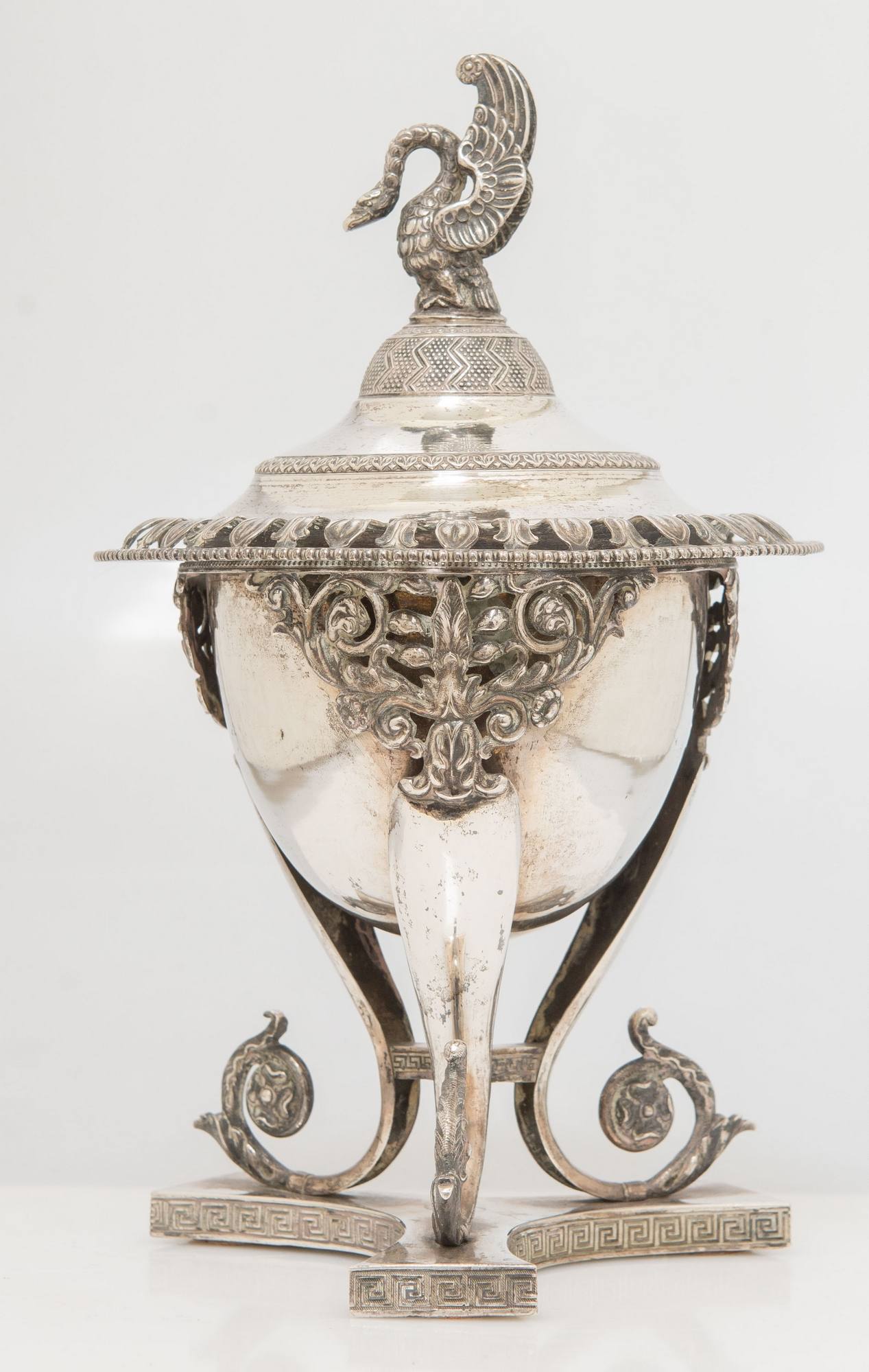 ARGENTIERE MILANESE, Regno lombardo-veneto, XIX secolo. Alzata con cigno in...