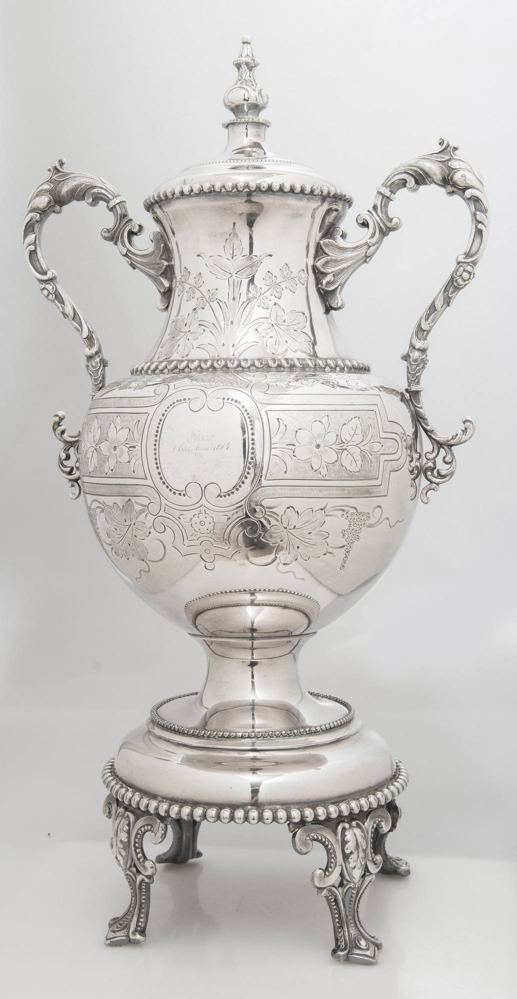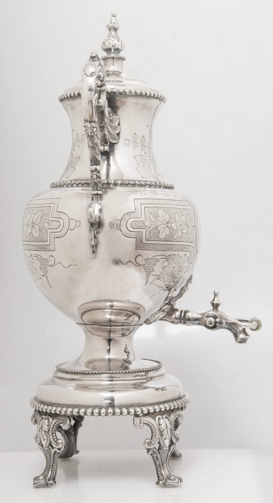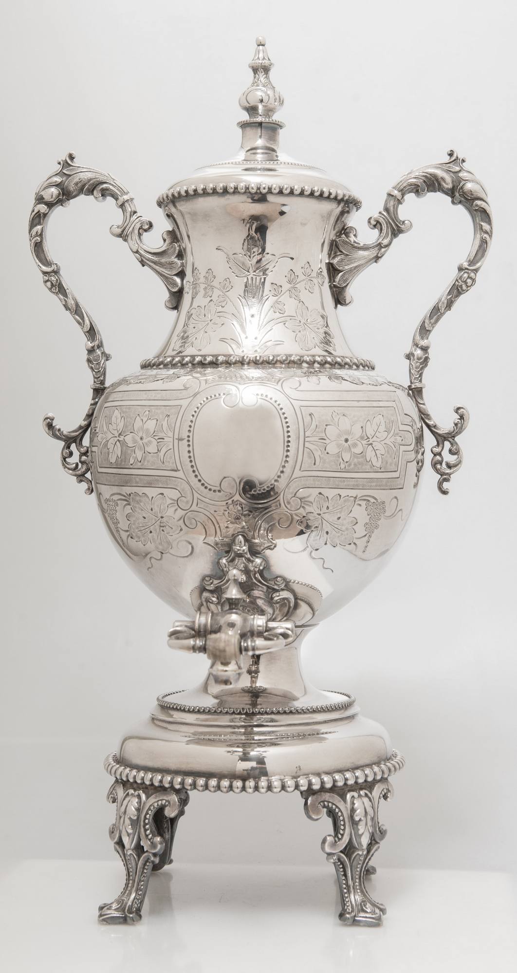 ROGER SMITH & CO, New Haven, 1835. Samovar in Sheffield. Sul fondo reca...