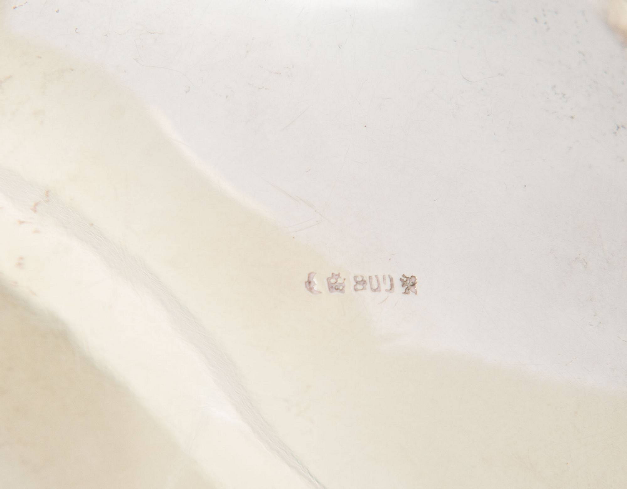 Zuccheriera in argento 800. Sotto la base reca punzoni: 800, luna, corona, leone. Peso: 353 gr.