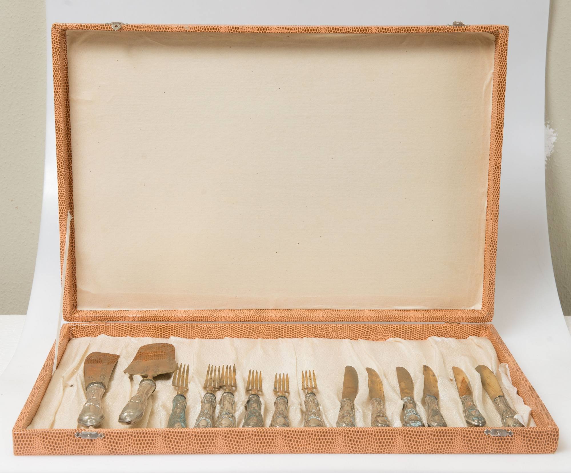 SERVIZIO DA DESSERT PER SEI PERSONE Con manico in argento 800 composto da sei...