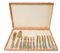 Con manico in argento 800 composto da sei coltelli, sei forchette e due posate grandi da portata, entro scatola originale. Sul manico, ogni posata reca punzone 800.
