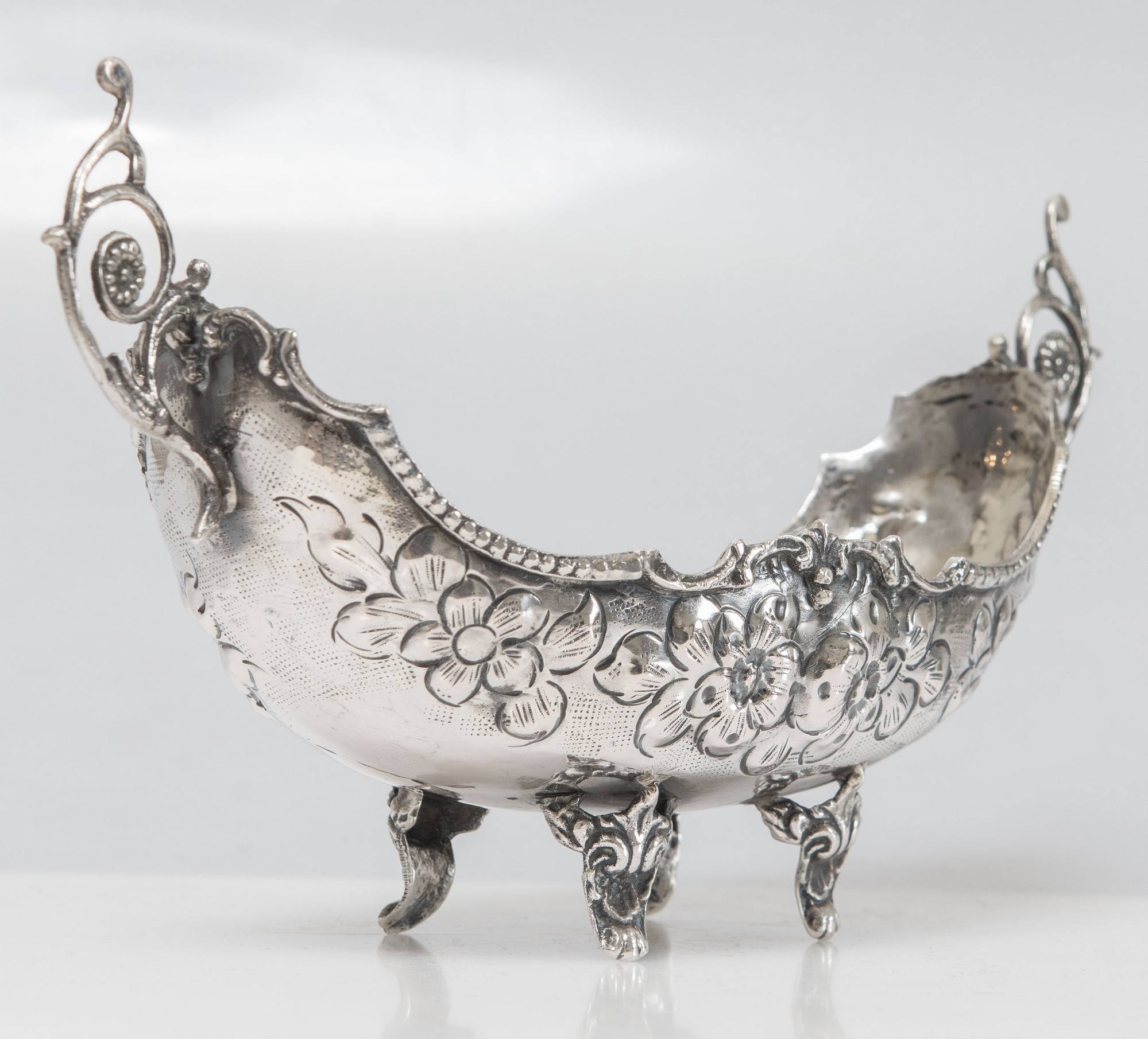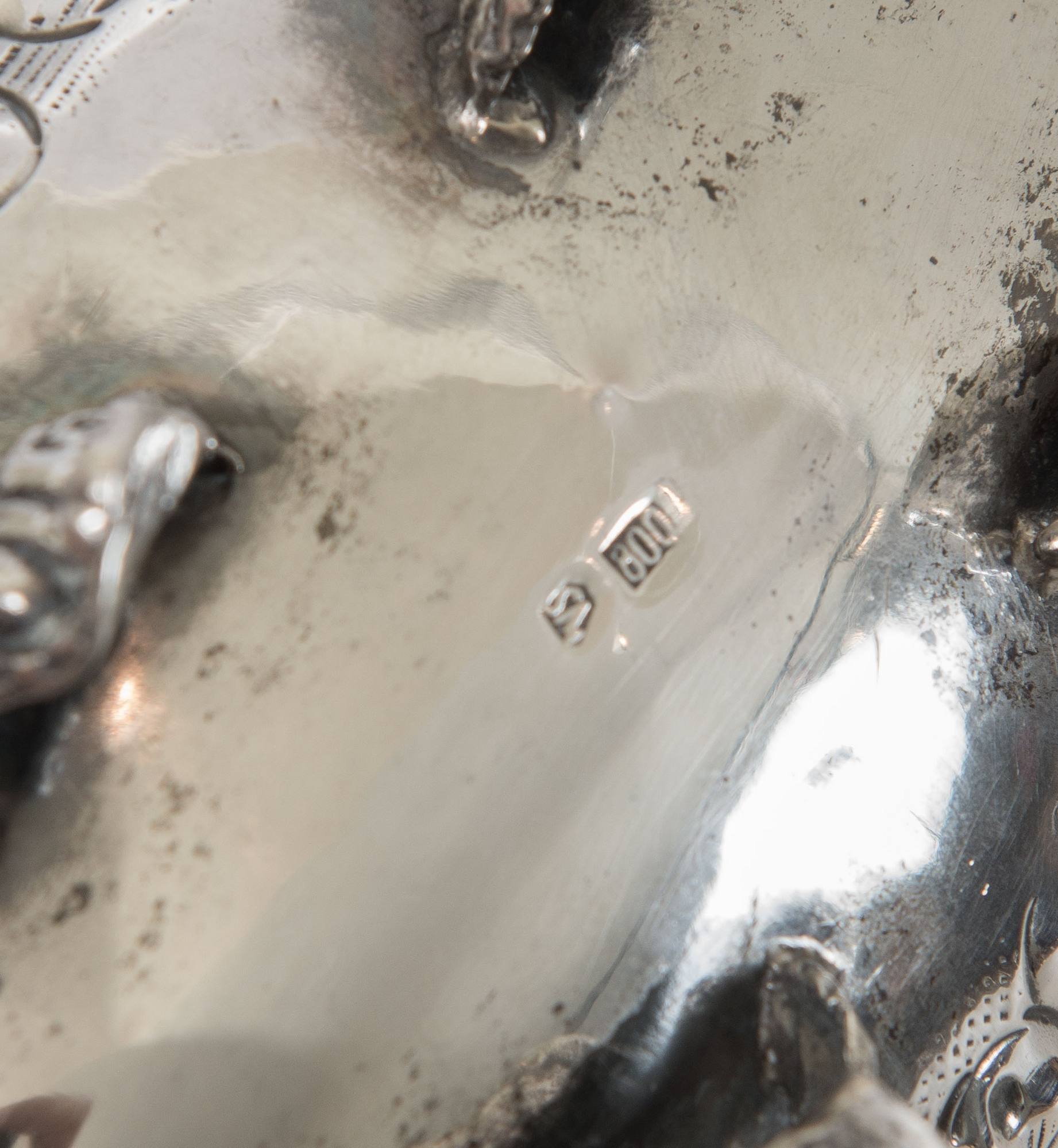 Realizzata in argento 800. Sotto la base reca punzoni: 800 e WS. Peso: 226 gr.