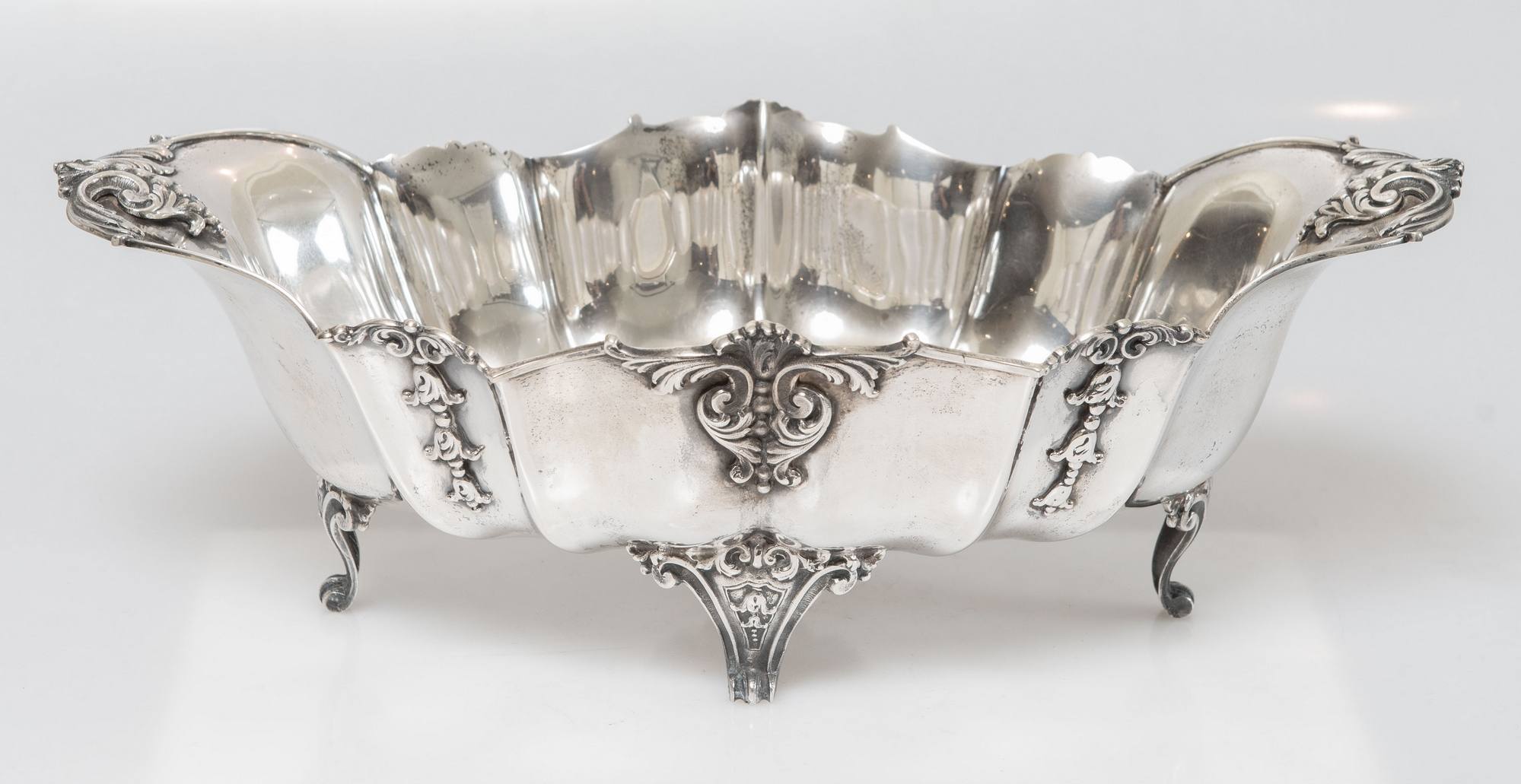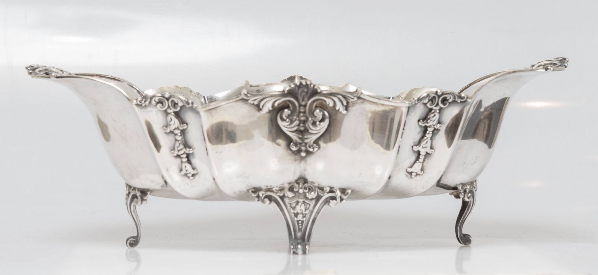 Realizzato in argento 800. Sotto la base reca tre punzoni illegibili. Peso: 723 gr.