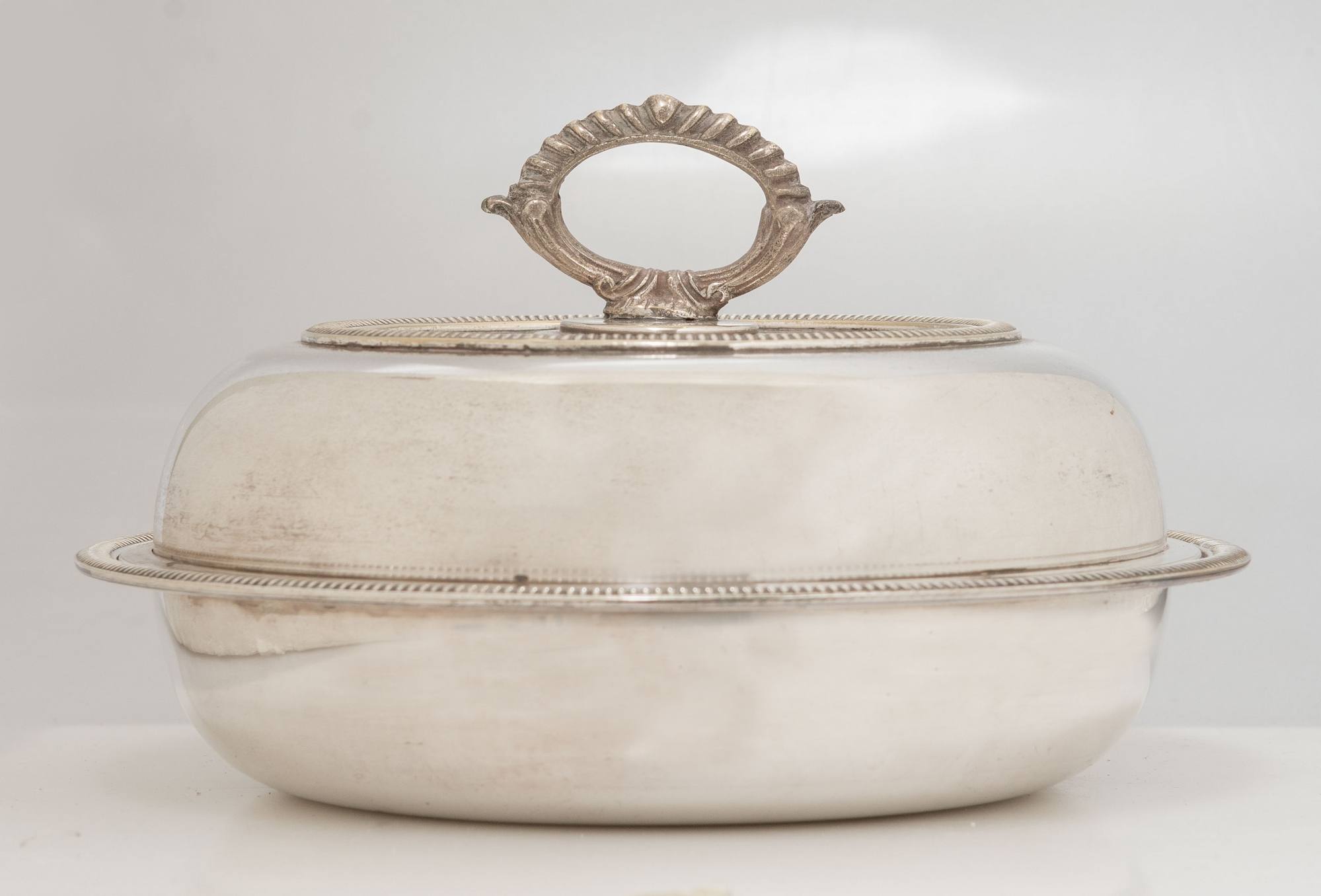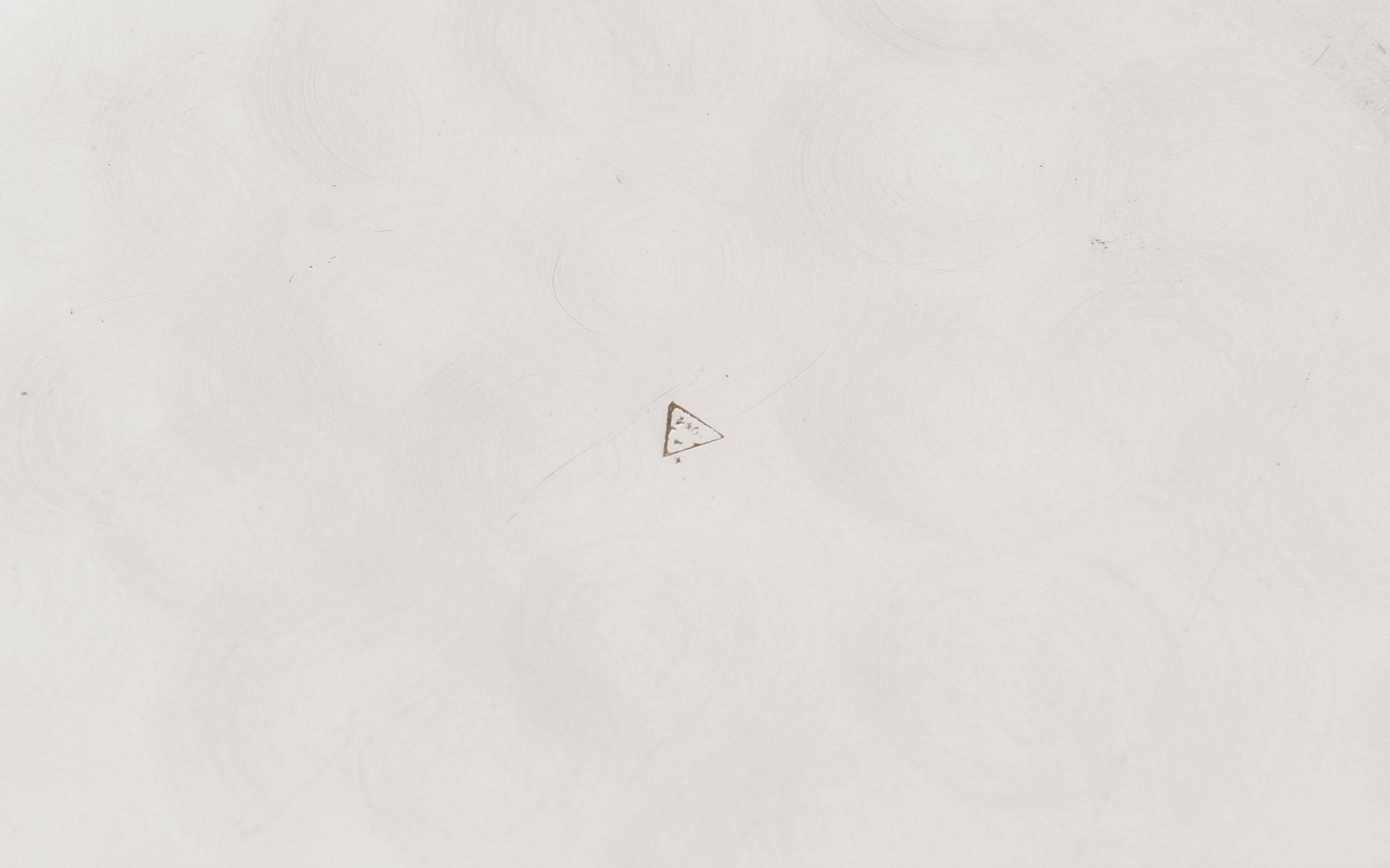 Realizzata in metallo argentato. Sotto la base reca un punzone parzialmente leggibile doppio triangolare, attribuibile all’Old Sheffield Plate. Peso: 906 gr.