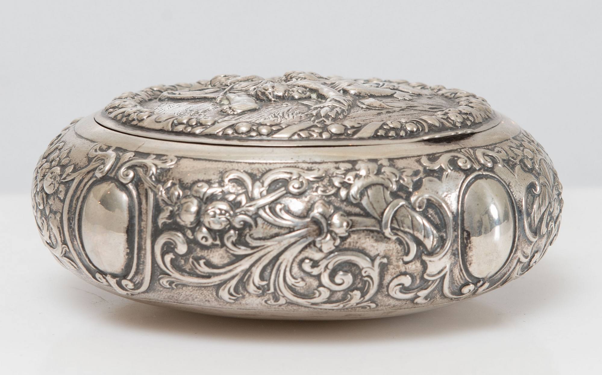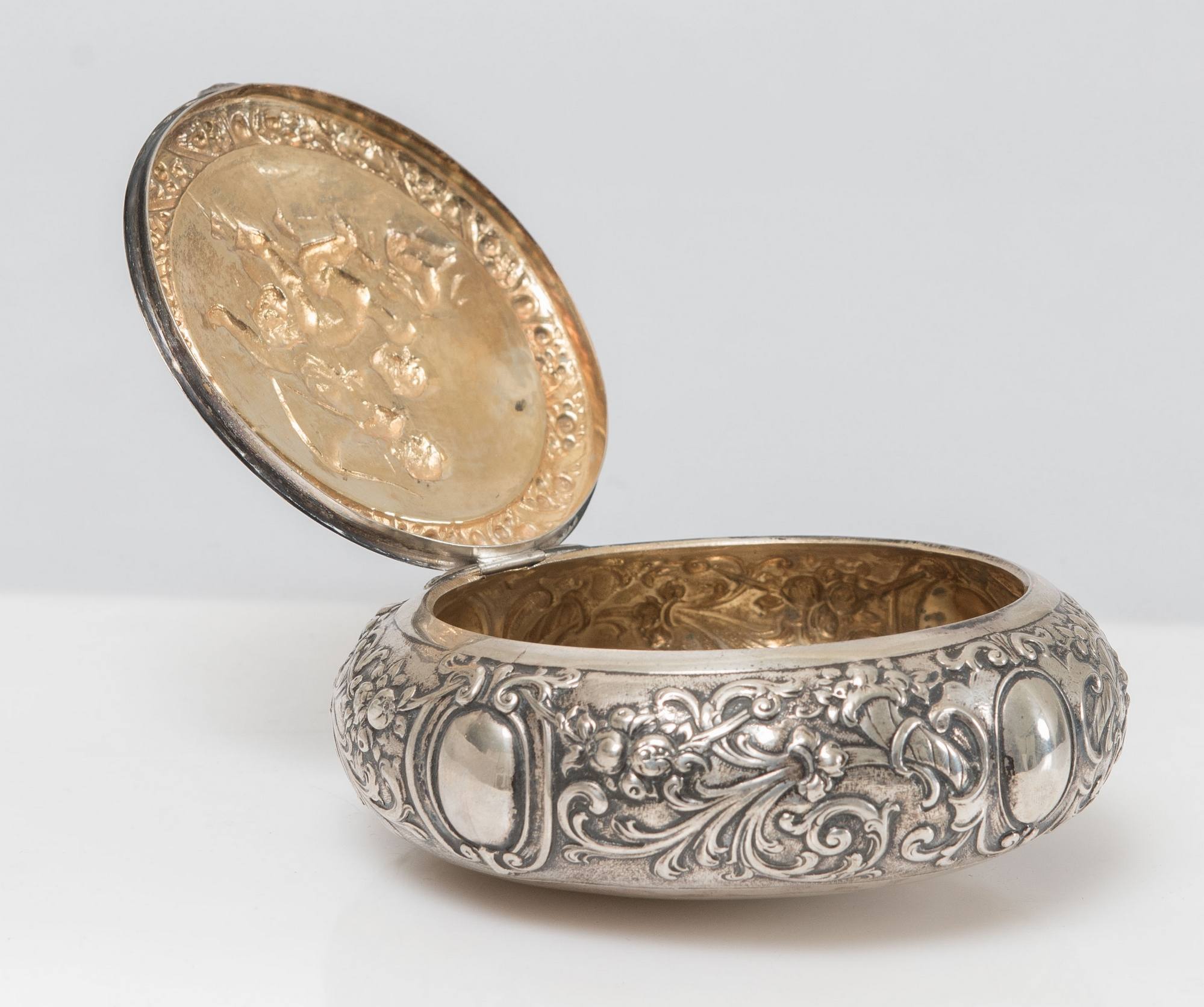 ARGENTERIA TEDESCA, XX secolo Scatola rotonda in argento 800 decorata con...