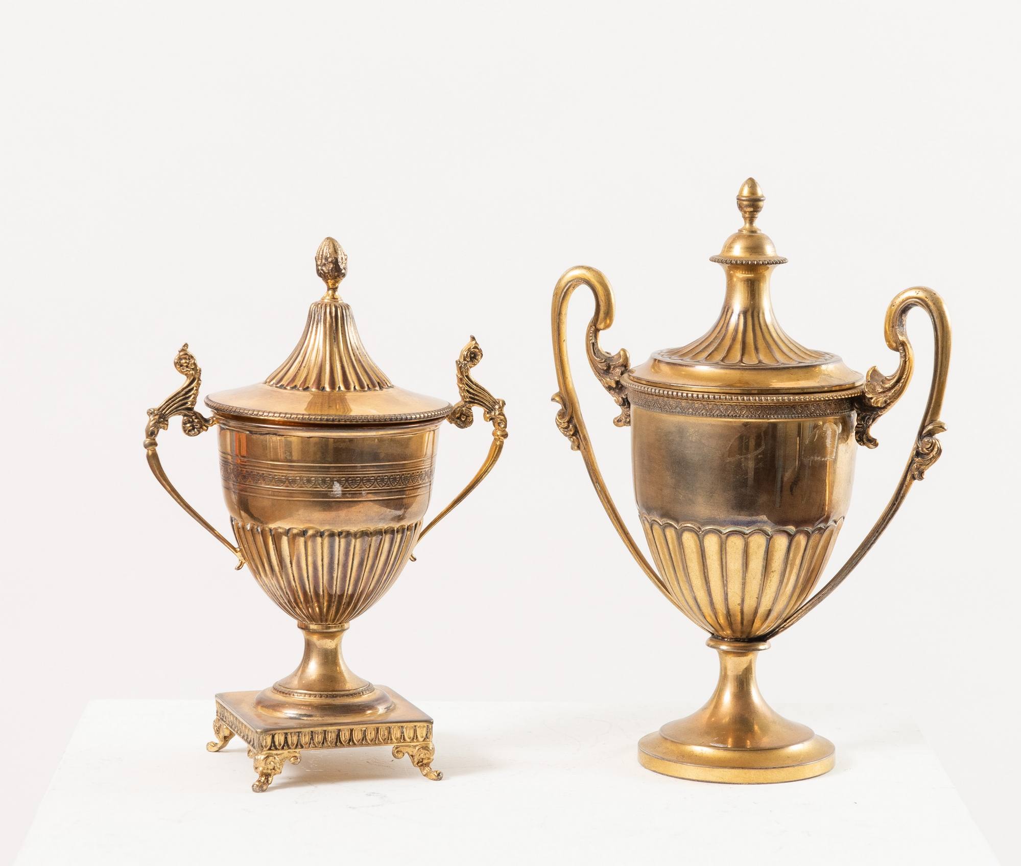 COPPIA DI COPPE 1 - Coppa in argento 800 dorato. Sul bordo inferiore reca tre...