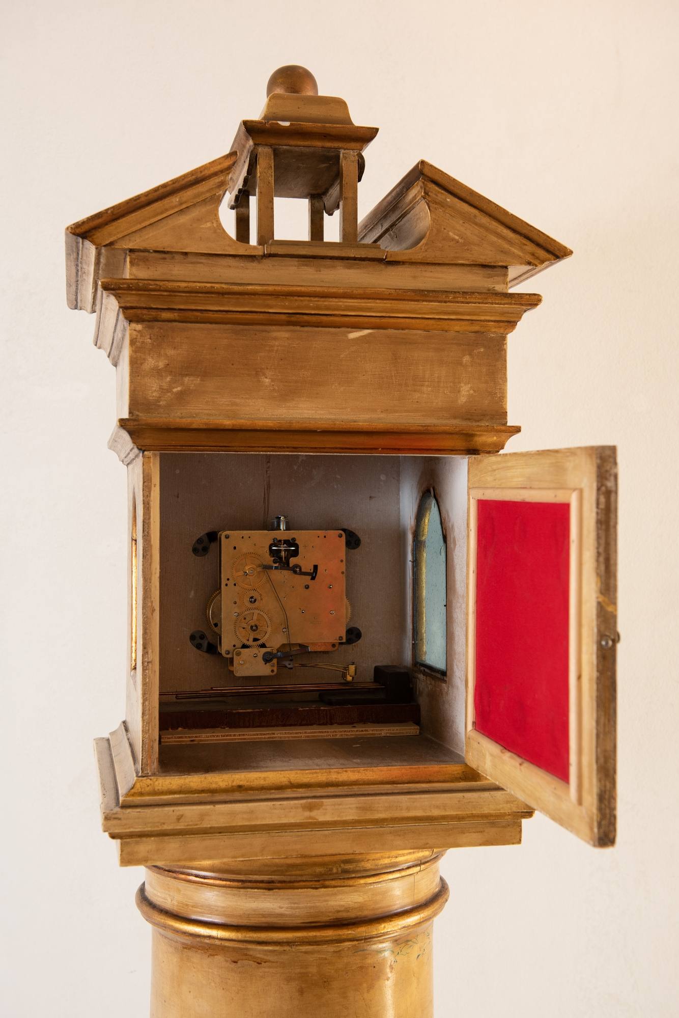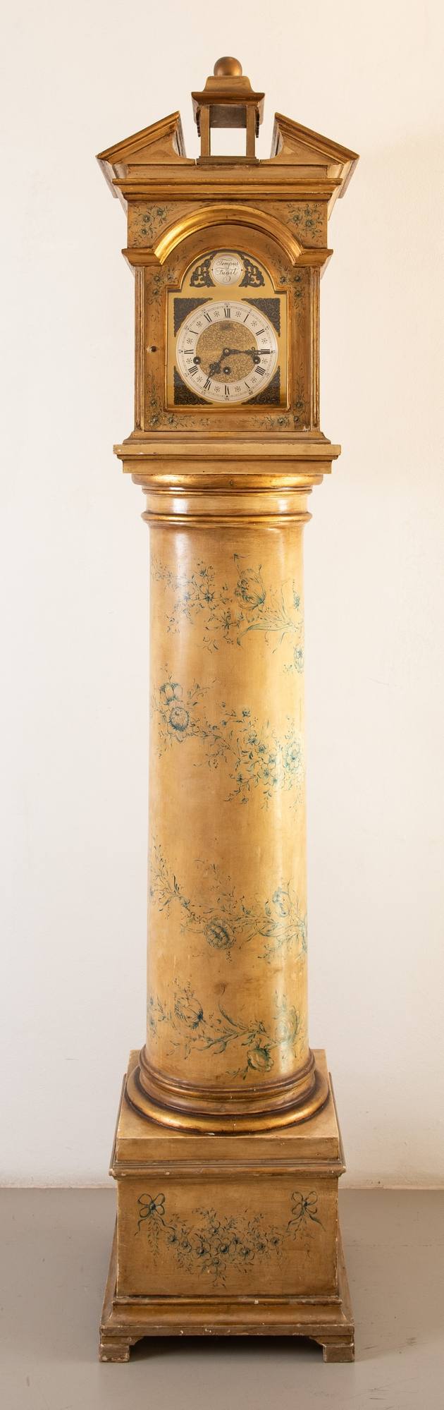 Lotto 113 | Orologio a colonna, laccato e dorato. Anni '50 del XX secolo. Cm 205x35x35.