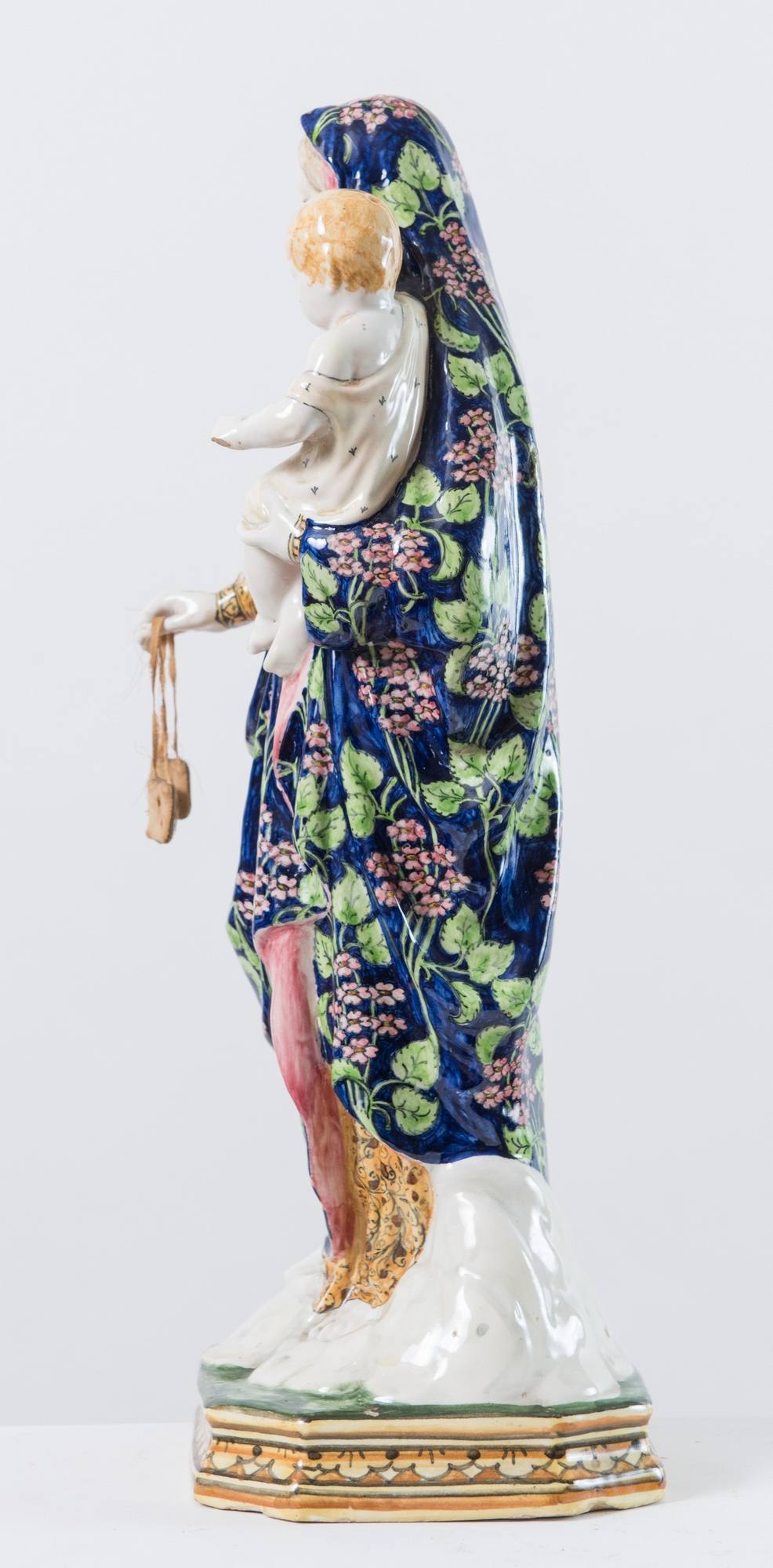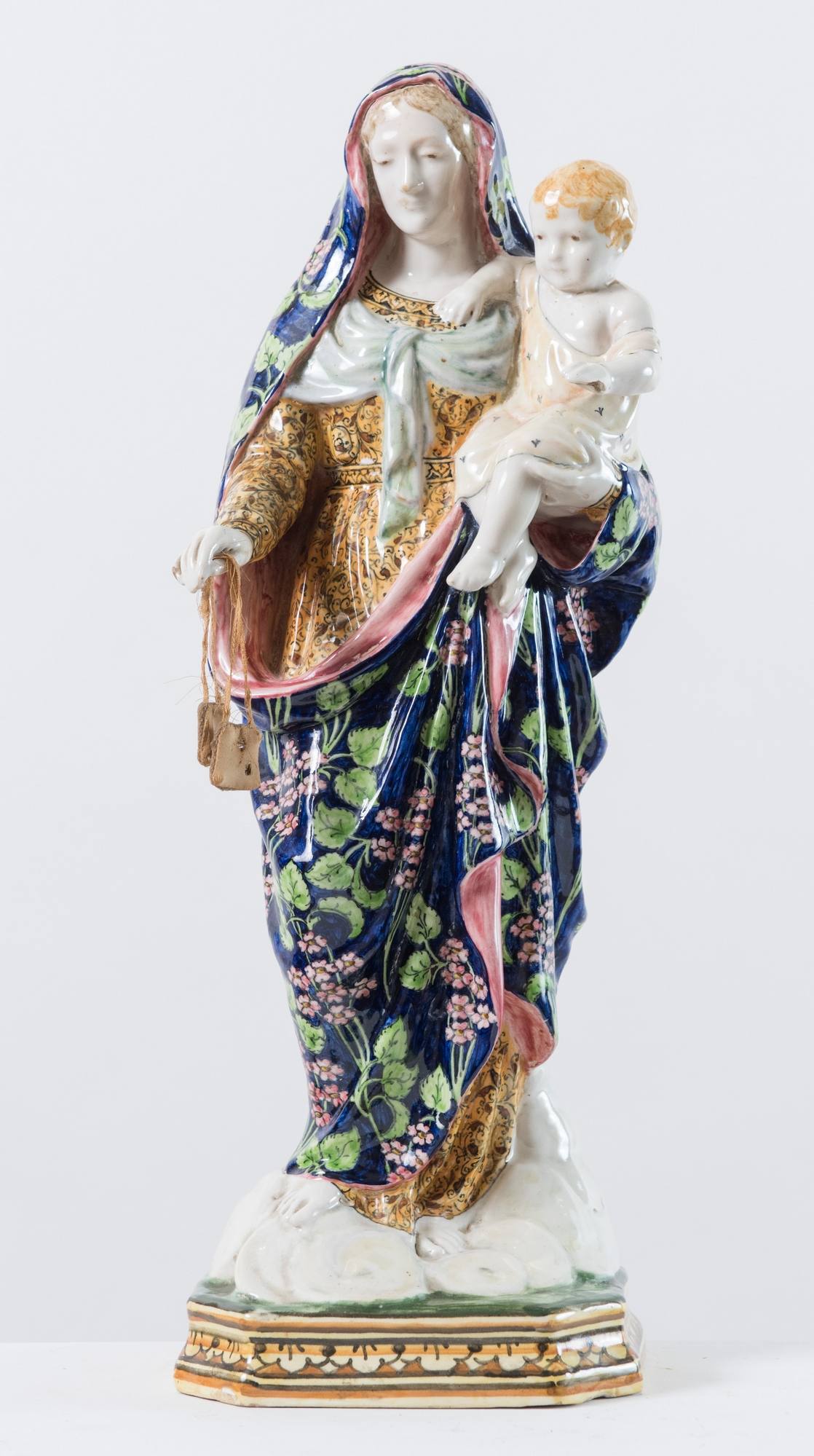 ANGELO MINGHETTI, Bologna, XIX secolo Madonna con bambino in piedi. Sotto la base reca sigla AM e scritte Bologna - Italia. Cm 43x14x14.