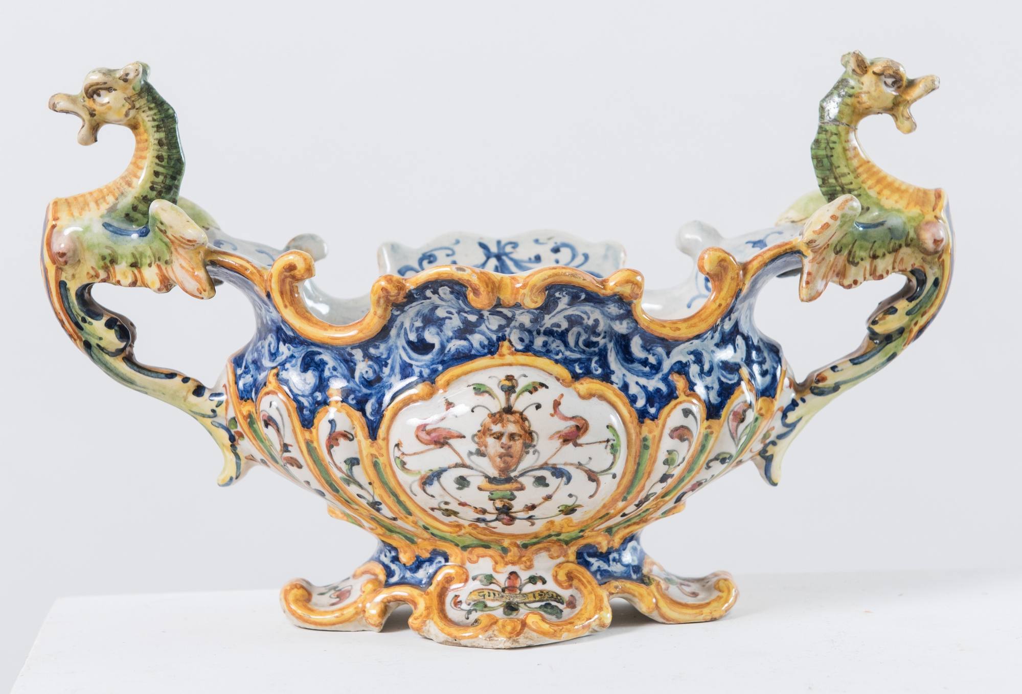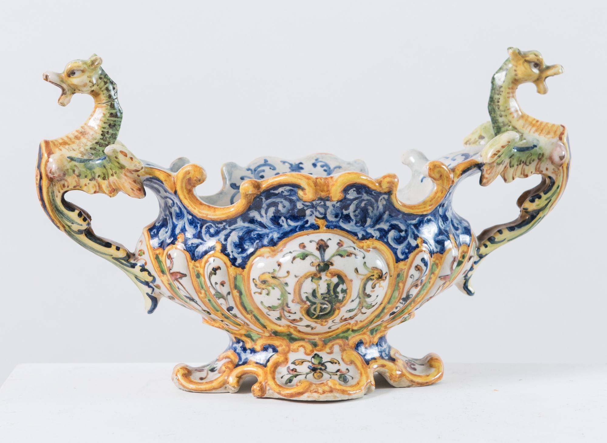 ANGELO MINGHETTI, Bologna, XIX secolo Centrotavola con prese a guisa di drago. Sotto la base reca sigla di AMinghetti. Cm 16,5x26x11.