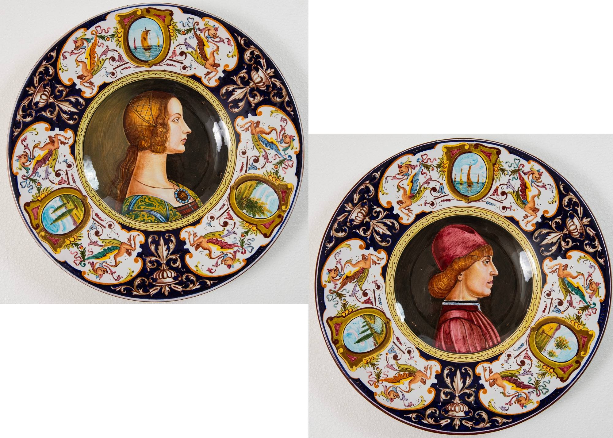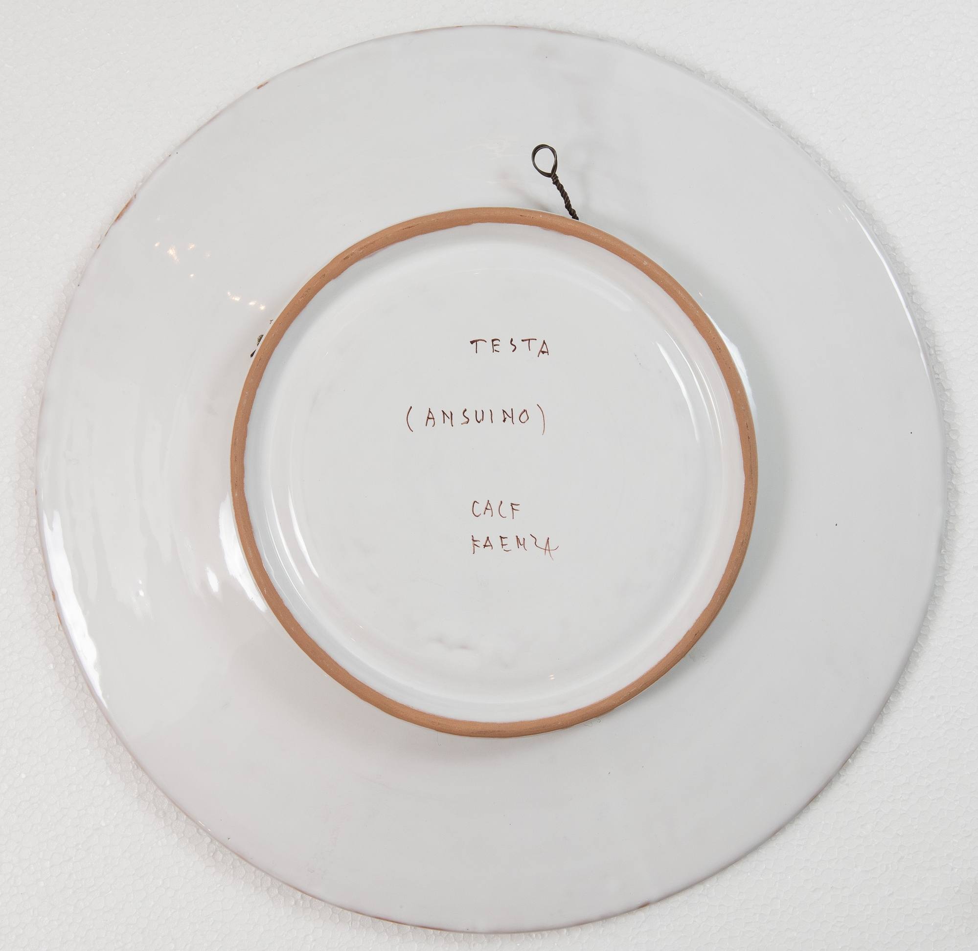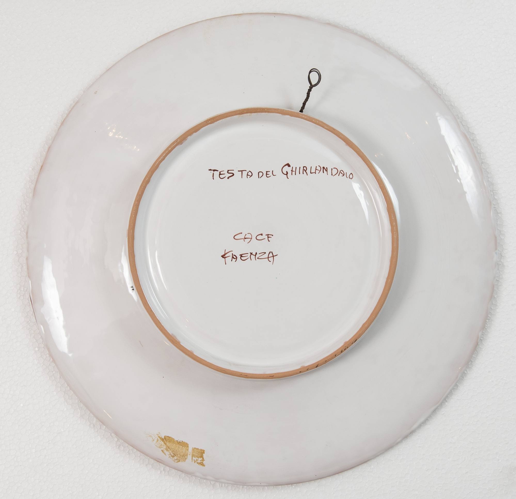 MANIFATTURA CACF, Faenza, metà del XX secolo Coppia di piatti in ceramica, raffiguranti una testa femminile dal Ghirlandaio e una testa maschile da Ansuino da Forlì. Sotto le basi recano scritte CACF - Faenza e Testa del Ghirlandaio, Testa (Ansuino). Ciascuno di Ø cm 43.