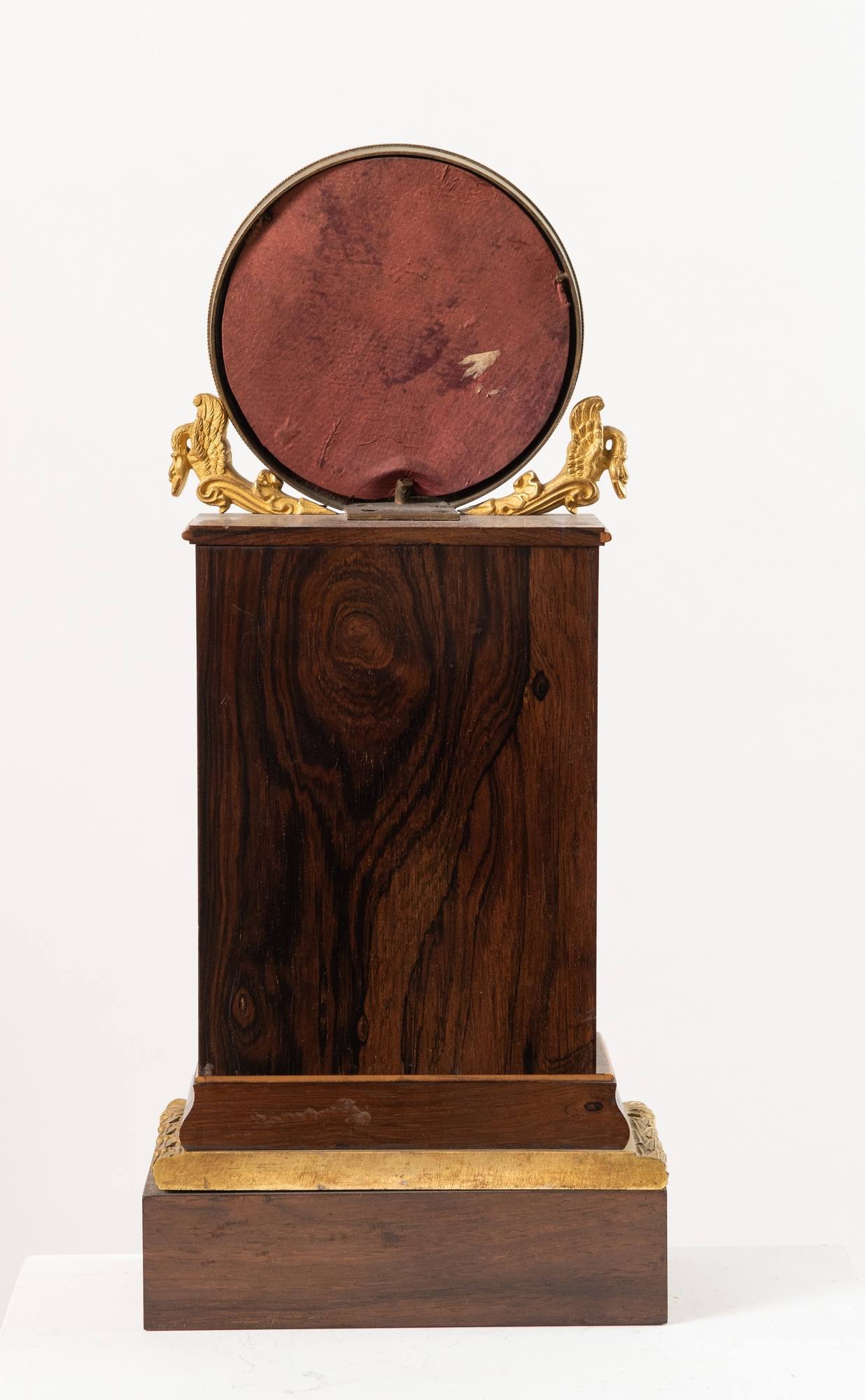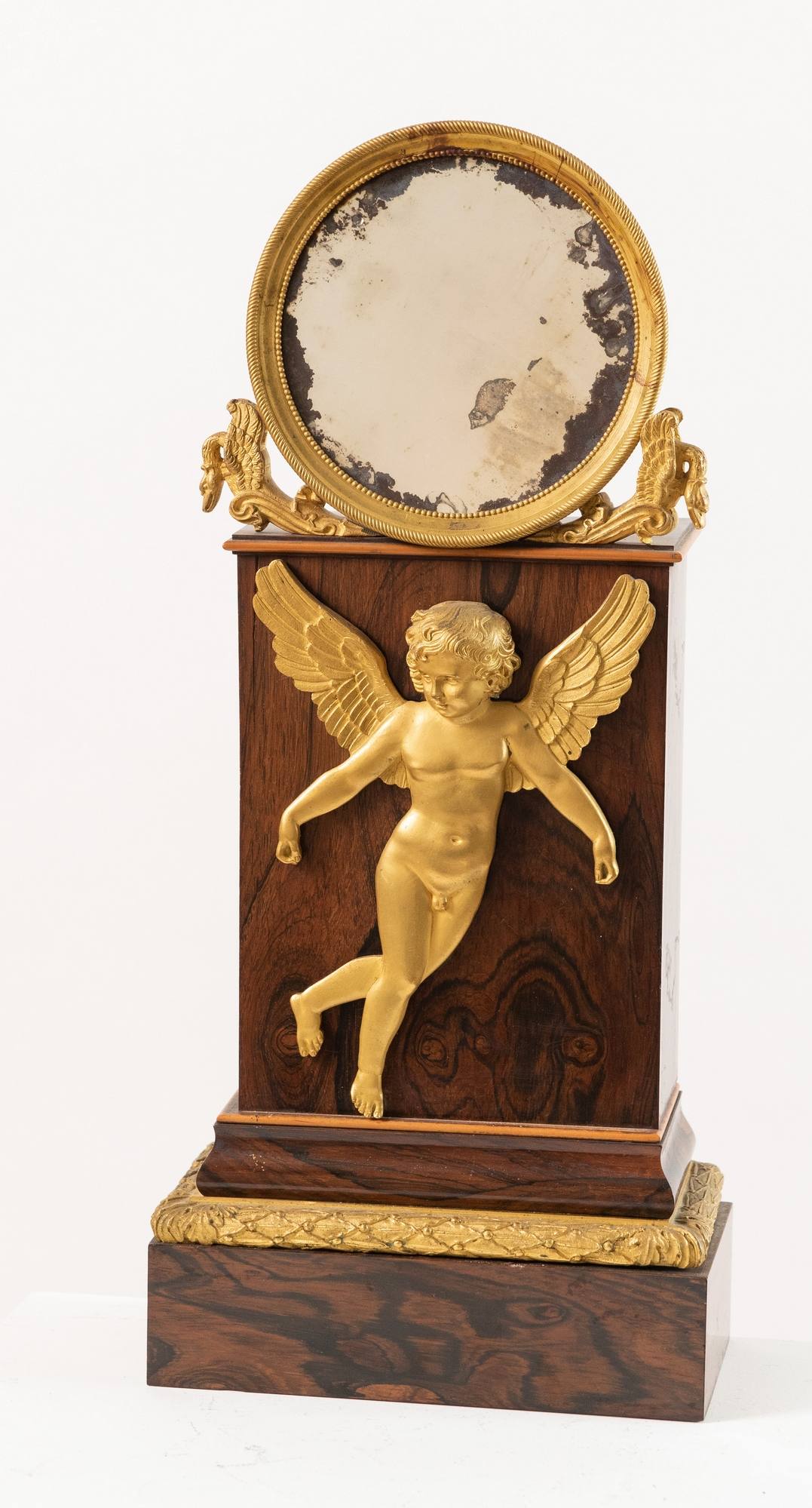 Specchio da barba lastronato in palissandro con applicazioni in bronzo dorato. Inizi del XIX secolo. Cm 40x18x9.