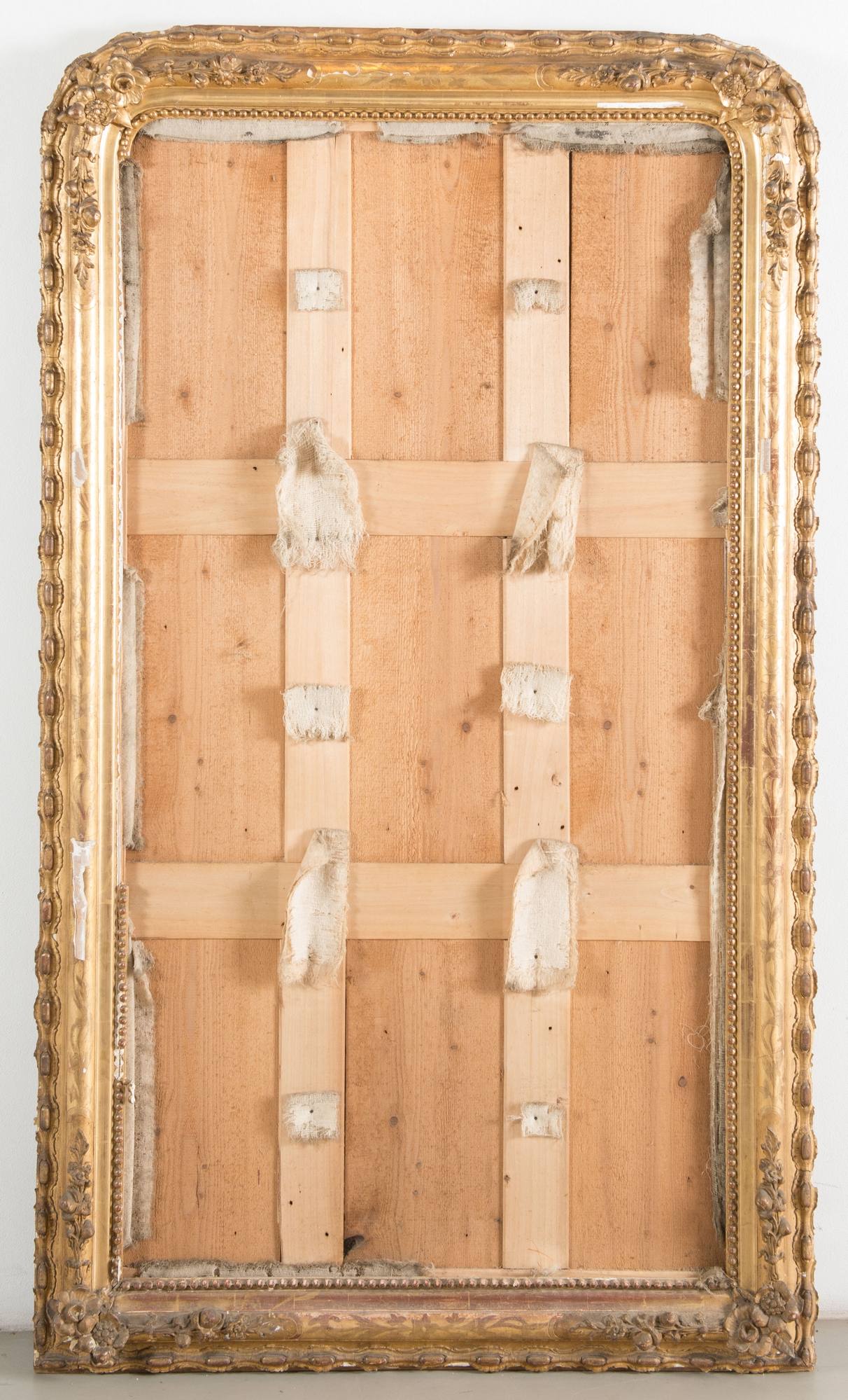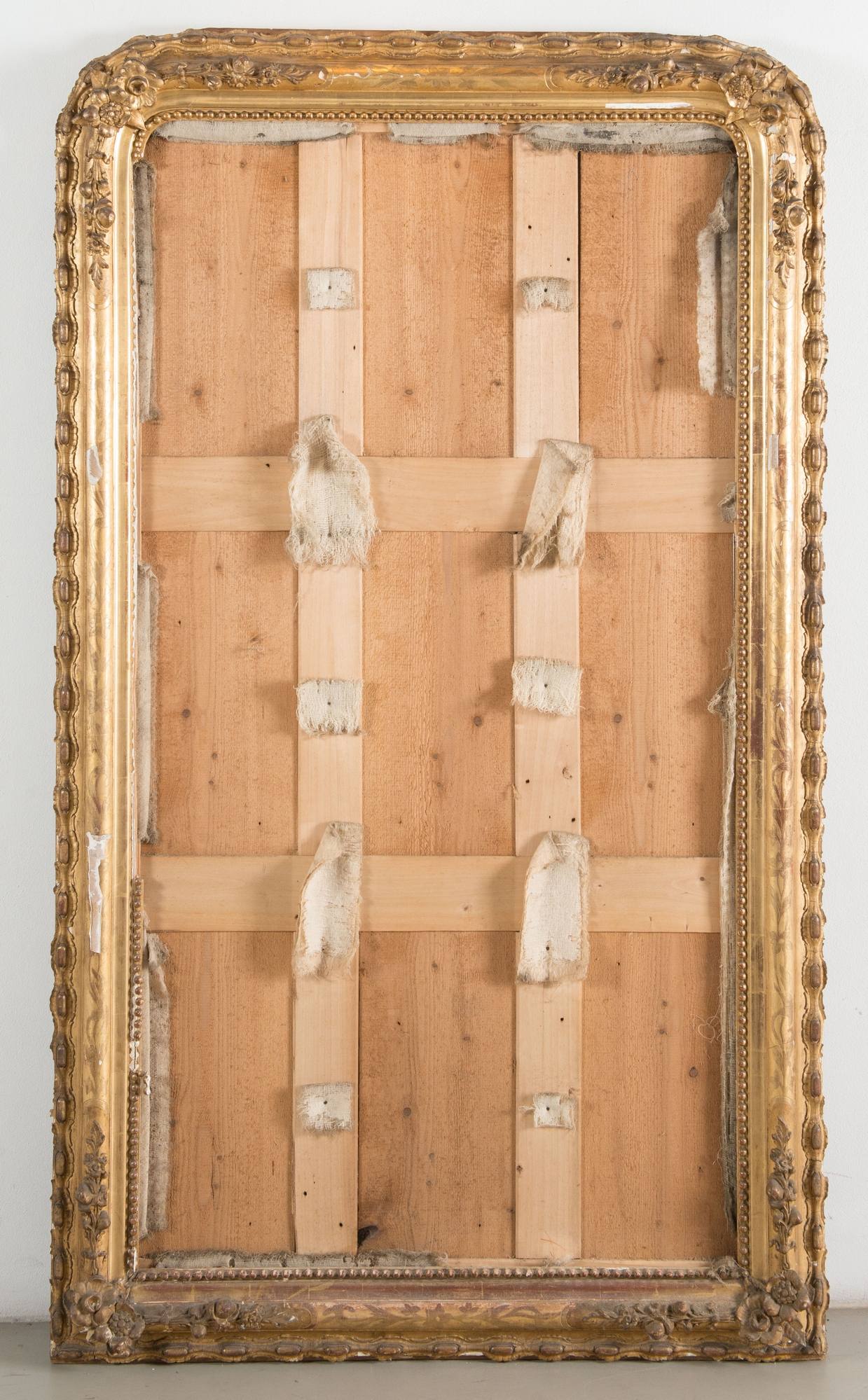 Cornice per specchiera in pastiglia dorata. Francia, metà XIX secolo. Cm 187x109,5x5. Lievi difetti.