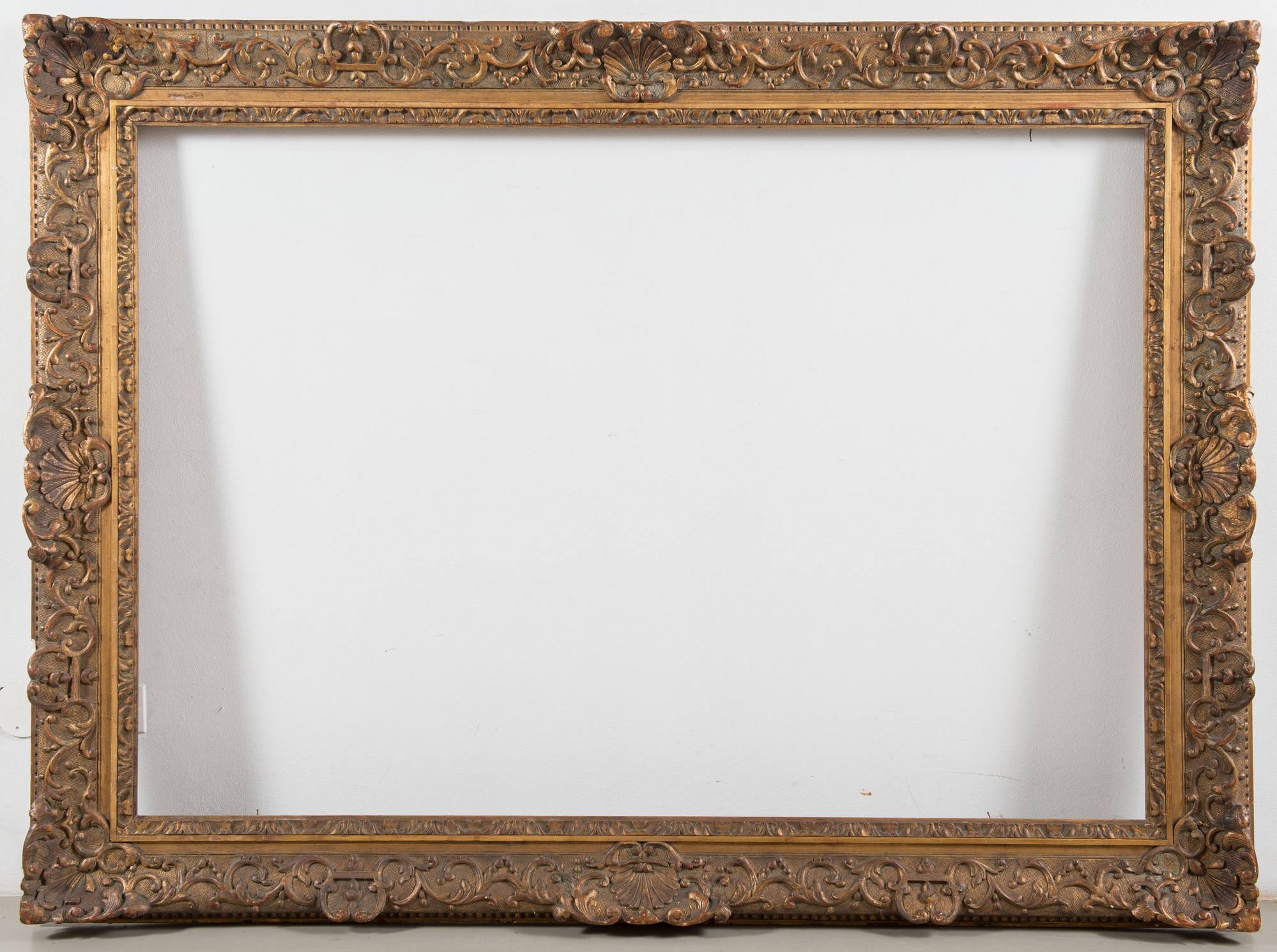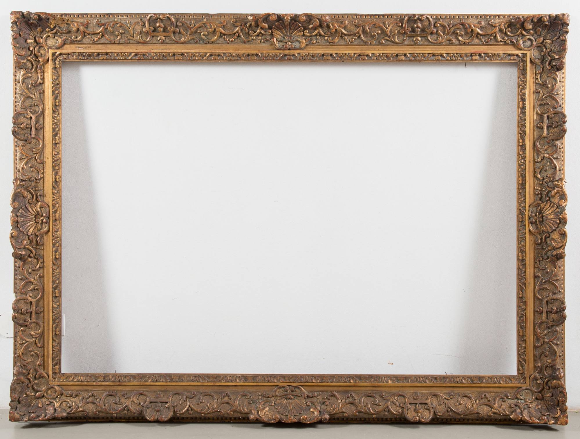 Grande cornice dorata realizzata alla fine del XIX secolo in stile del XVIII secolo. Cm 144x193x10,5. Lievi difetti.