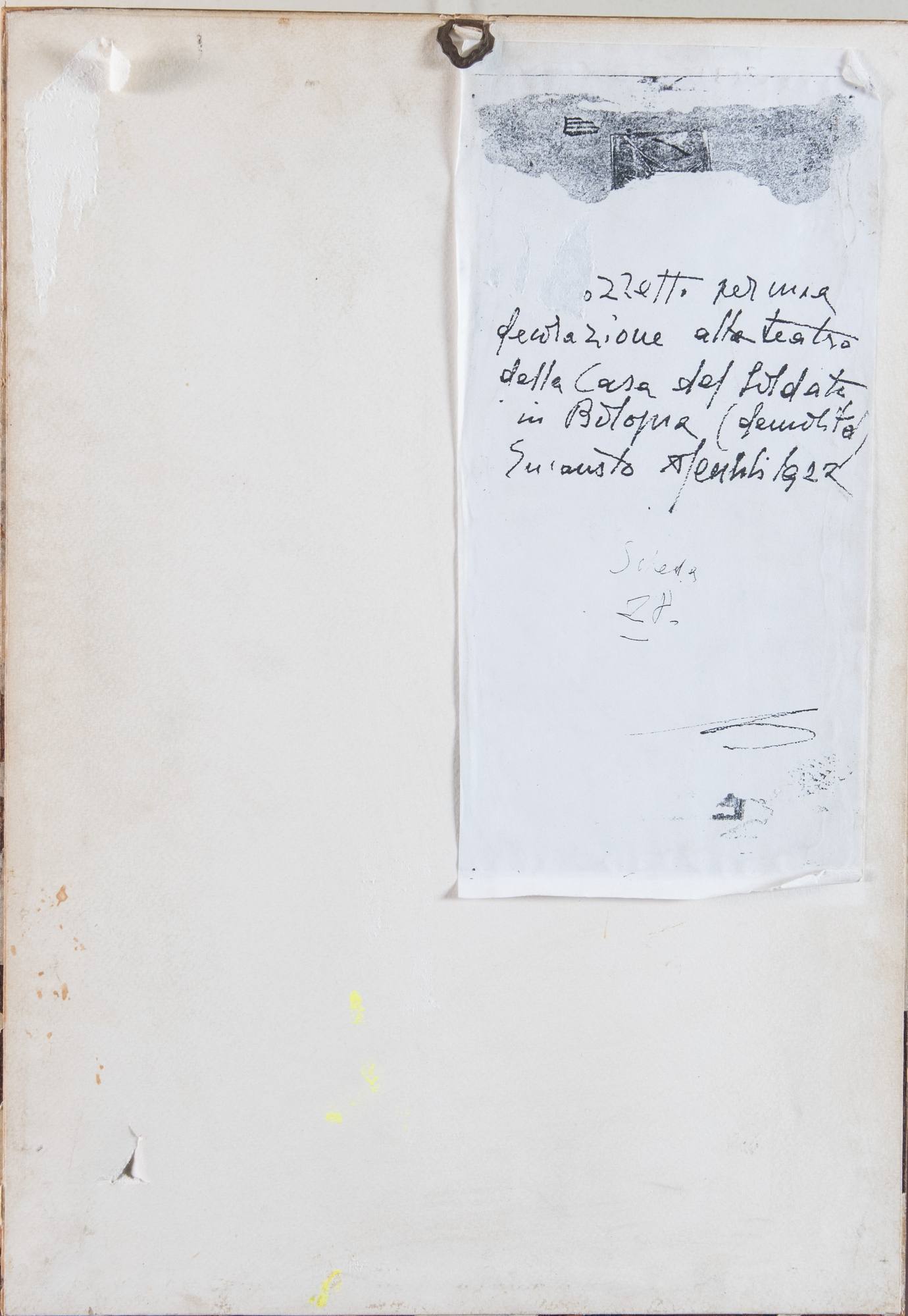 Pittore anonimo del primo ventennio del XX secolo “Soldato”, anni ’20. Tecnica mista su carta. Cm 27x13. Bozzetto per la decorazione del teatro della Casa del Soldato (Bologna).