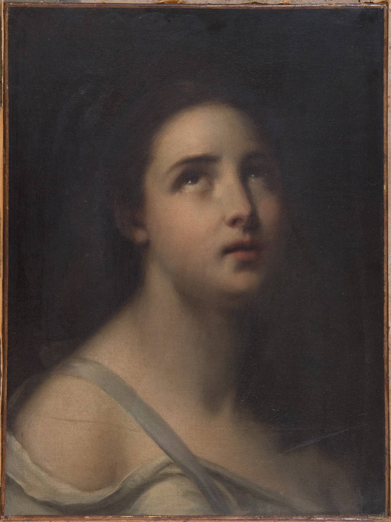 Maestro del XIX secolo "Figura di donna". Olio su tela. Cm 43,5x32.