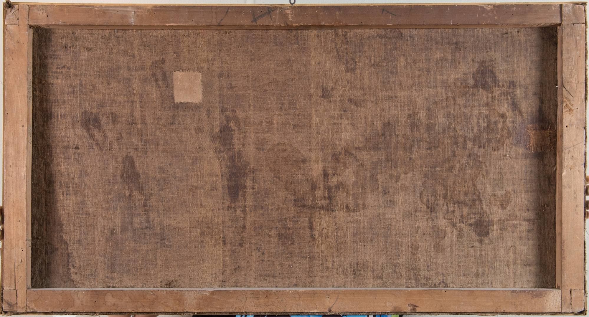 "Gioco delle bolle di sapone" e " Gioco della carozzina". Coppia di dipinti ad olio su tela. Cm 54,5x102 e cm 54x103.