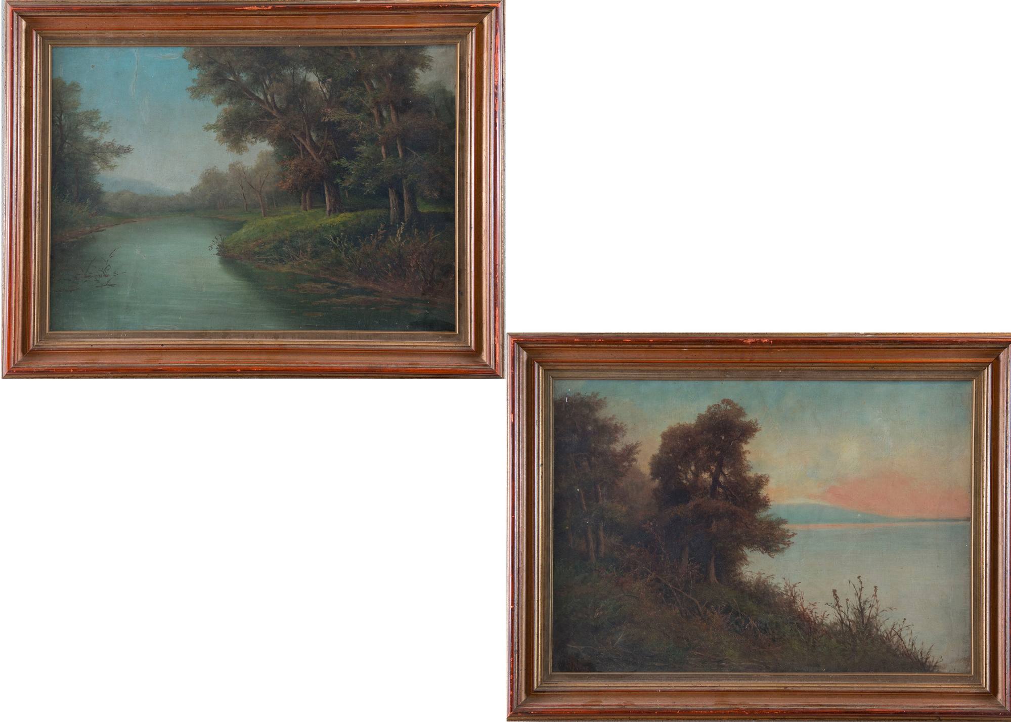 Maestro anonimo del XIX secolo Coppia di paesaggi. Olio su tela. Rispettivamente di cm 50,5x70,5 e cm 50x70.