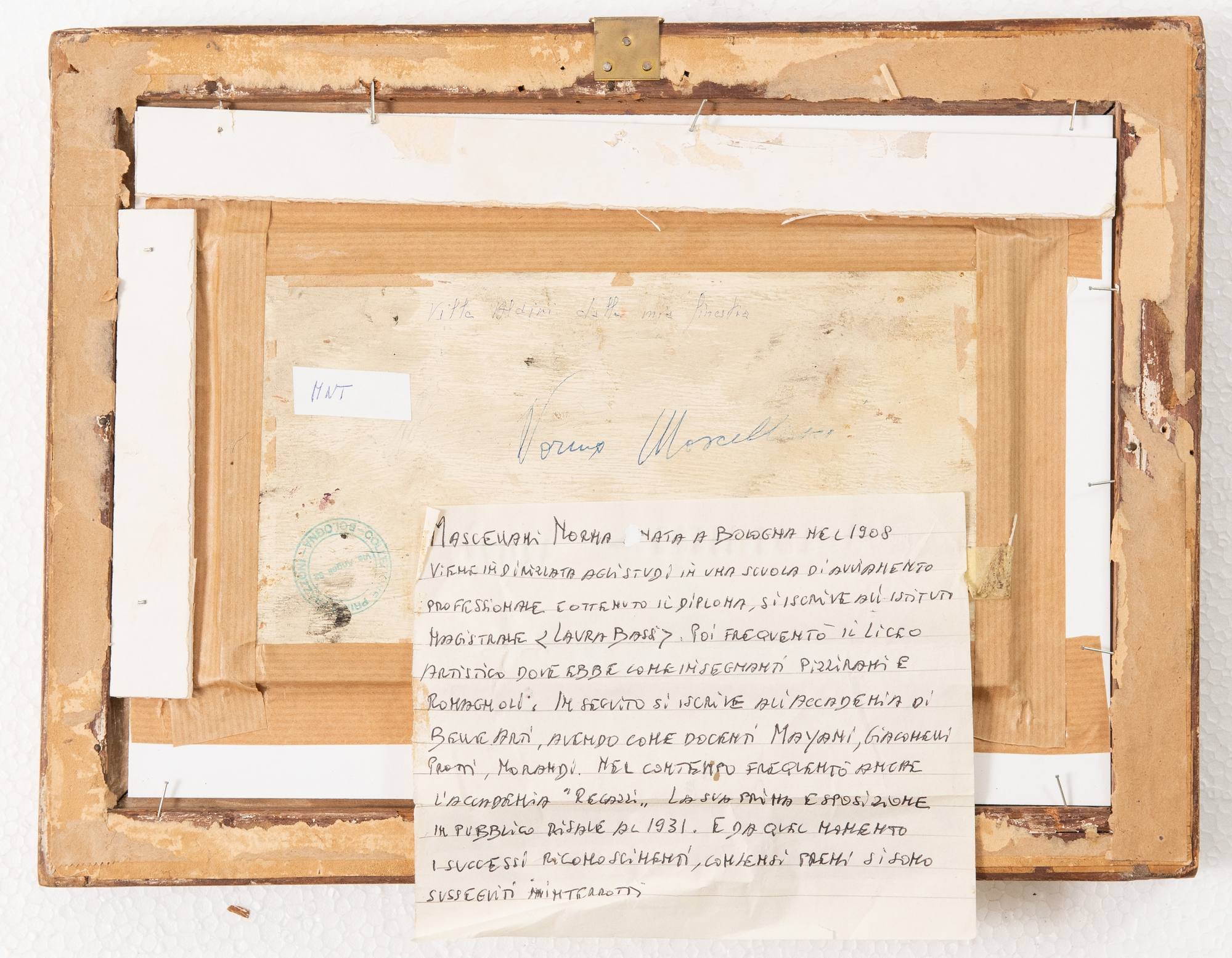 NORMA MASCELLANI (Bologna 1909- 2009) “Villa Aldini dalla mia finestra”. Olio su tavola. Cm 15x24. Opera firmata e intitolata al retro Norma Mascellani - Villa Aldini dalla mia finestra.