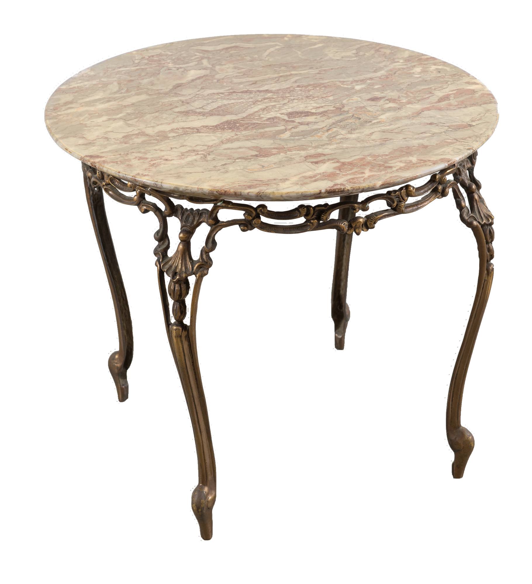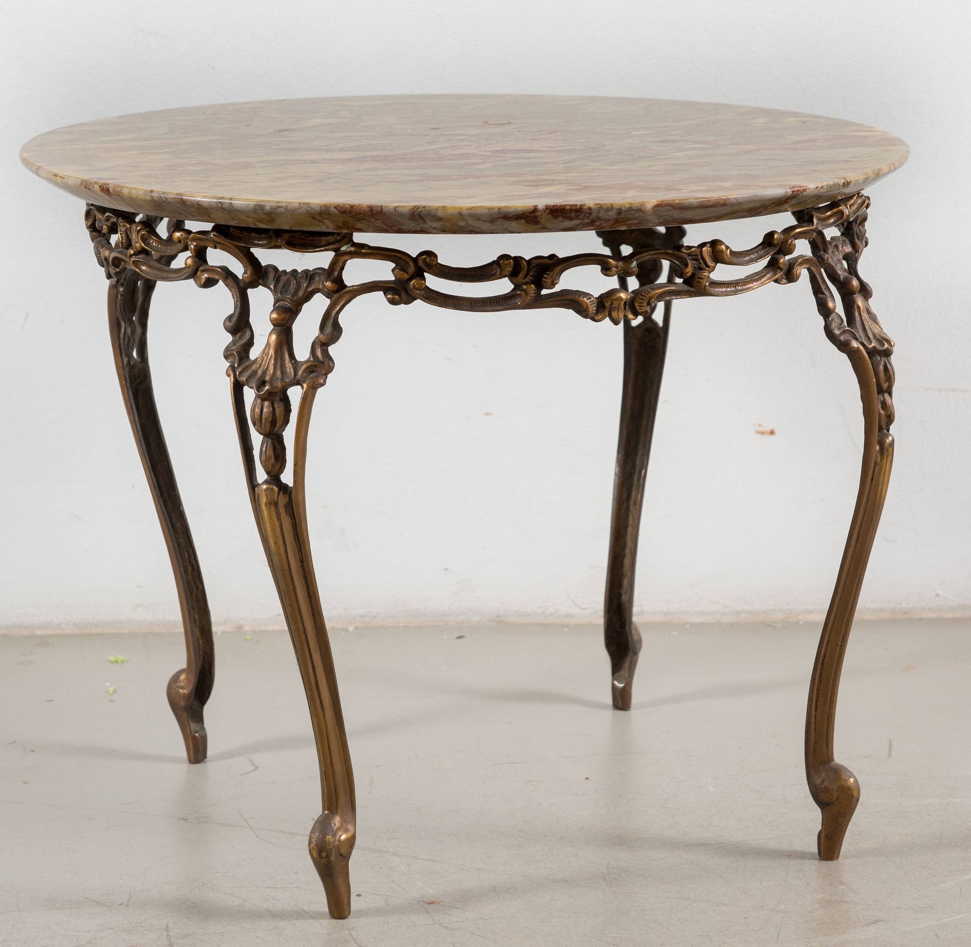Lotto 303 | Tavolino da salotto con fusione in bronzo e piano in marmo. In stile Luigi...