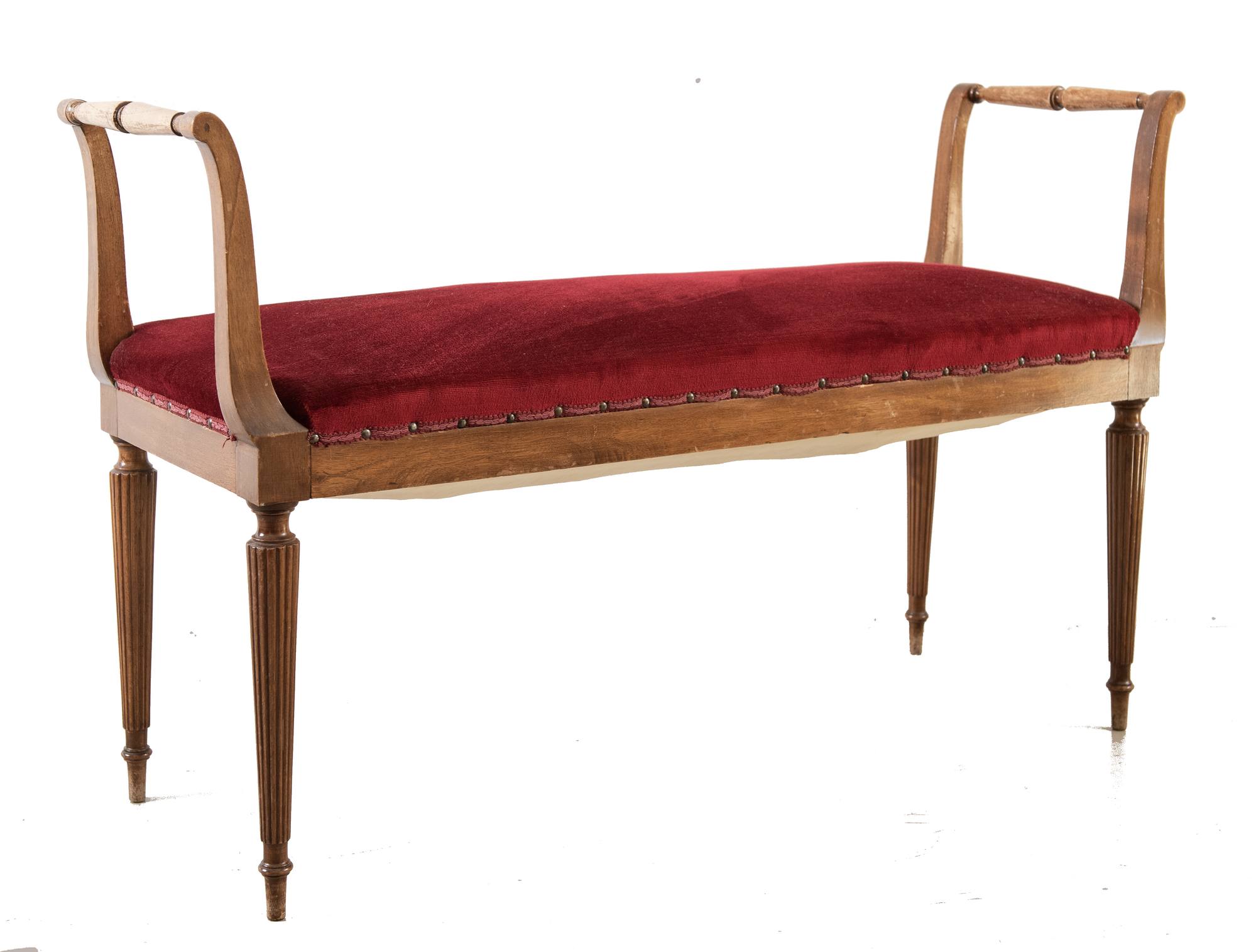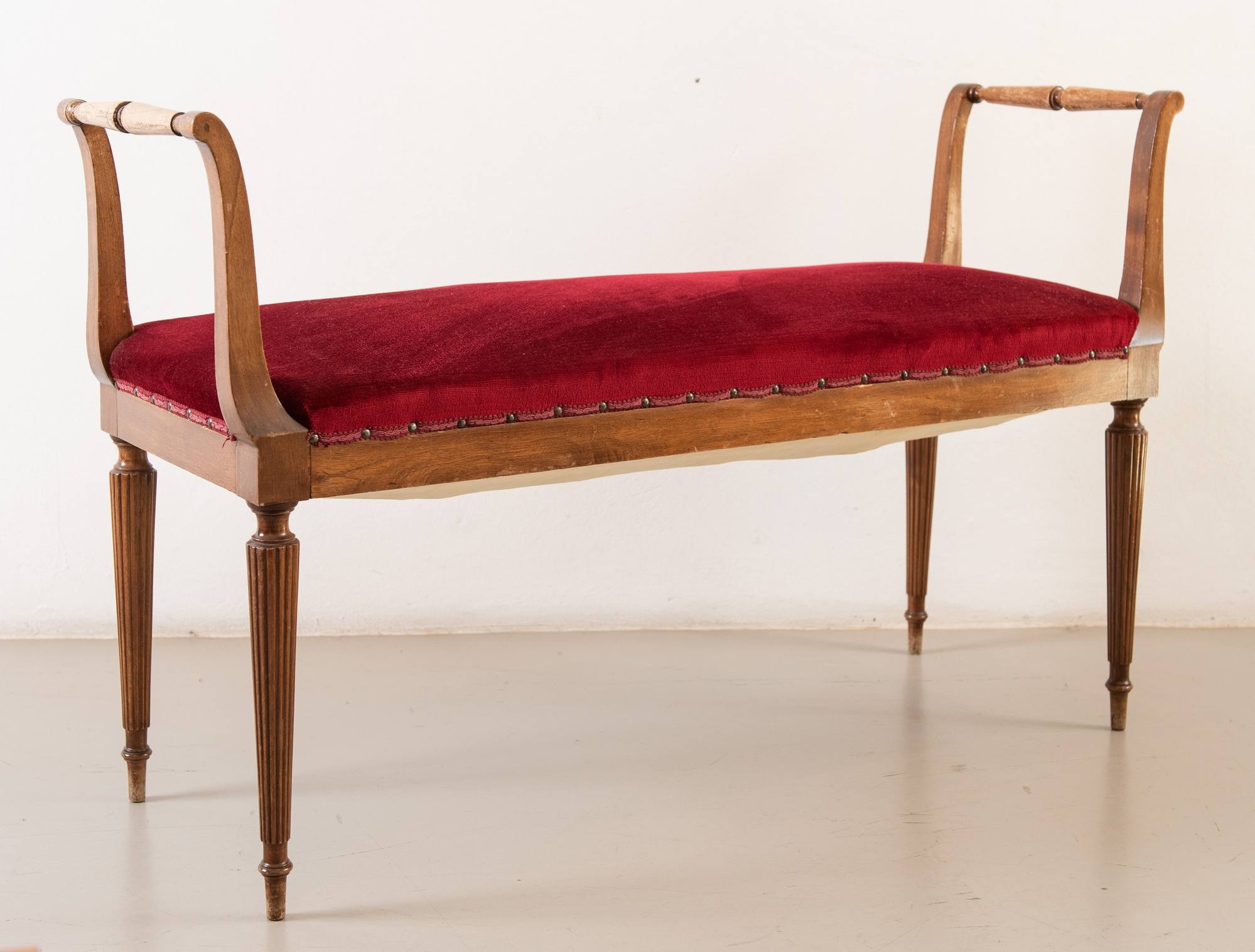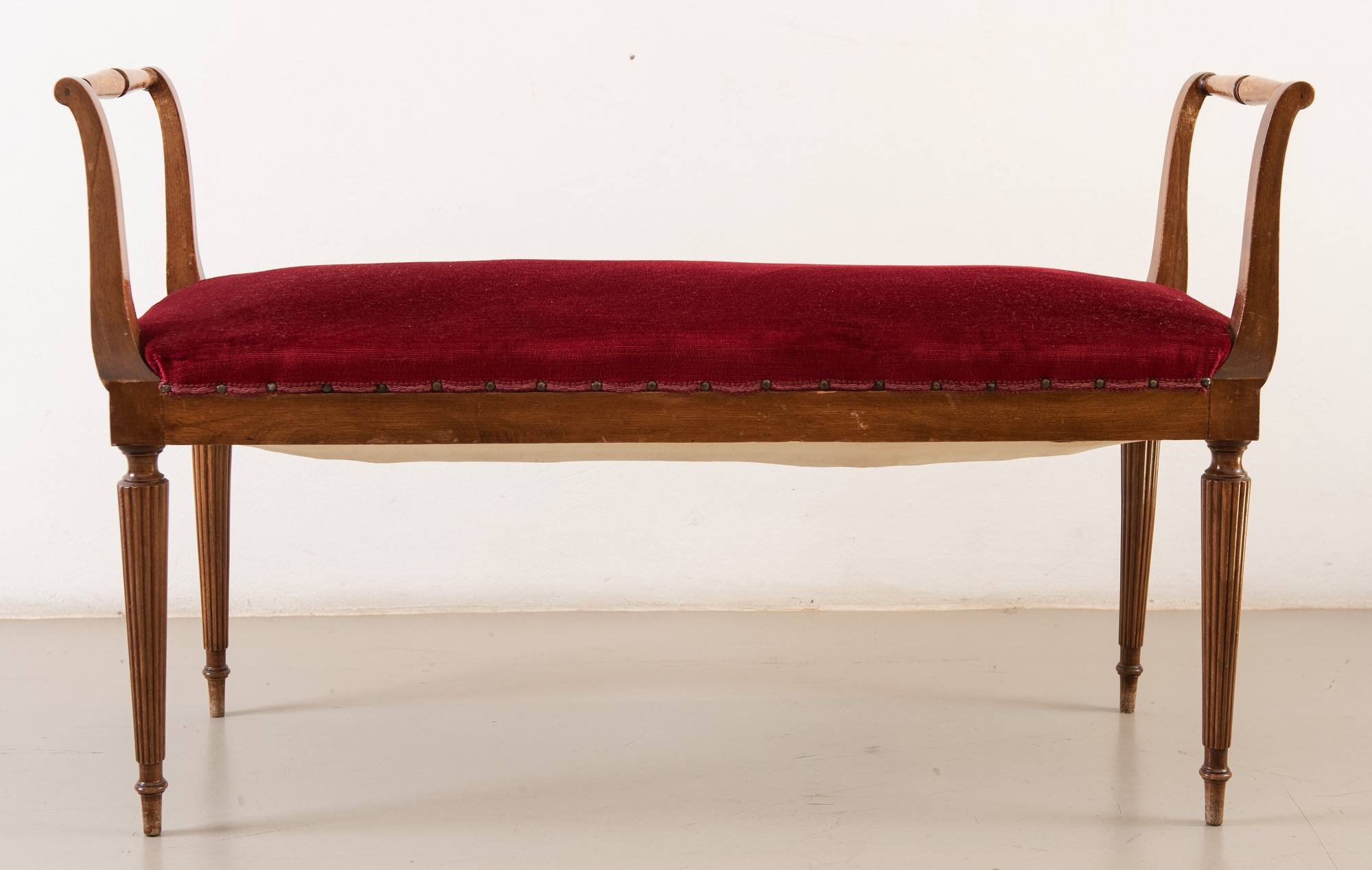 Coppia di panche, anni 50. Realizzate in legno di noce. Rispettivamente di cm...