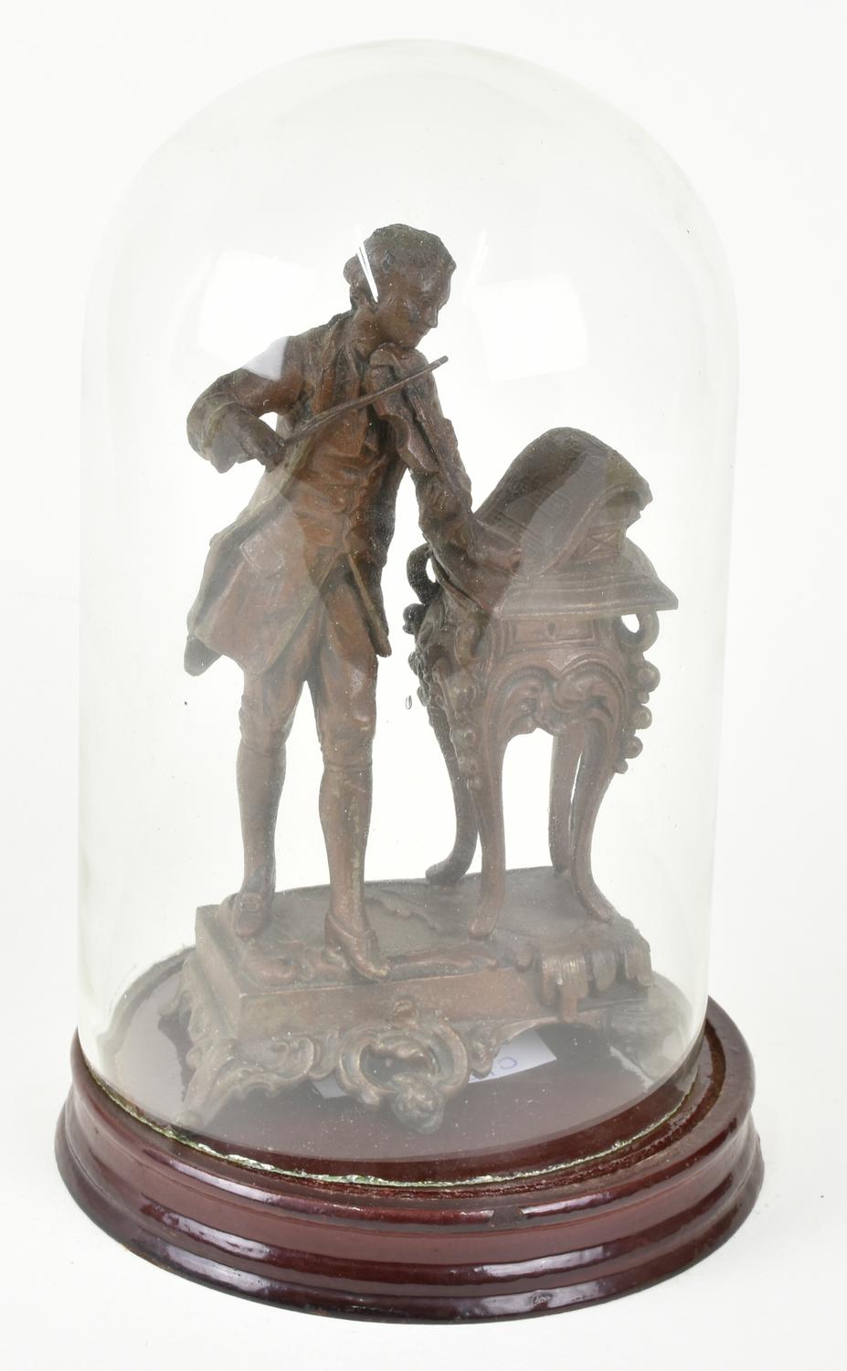 a forma di violinista con tavolino e spartito corredato da campana in vetro