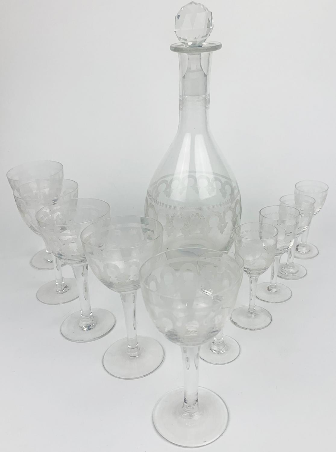 bottiglia in vetro inciso con tappo in cristallo (non pertinente), h cm 28