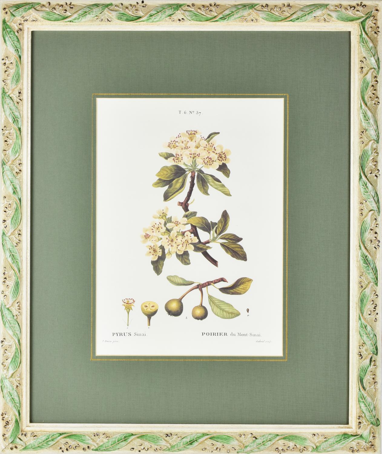 raffigurante Pyrus Sinai, da un'incisione antica a firma P. Bessa e Gabriel entro cornice in legno scolpito e laccato