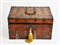 COFANETTO in noce con rinforzi in ferro, allinterno flaconi da toilette in...