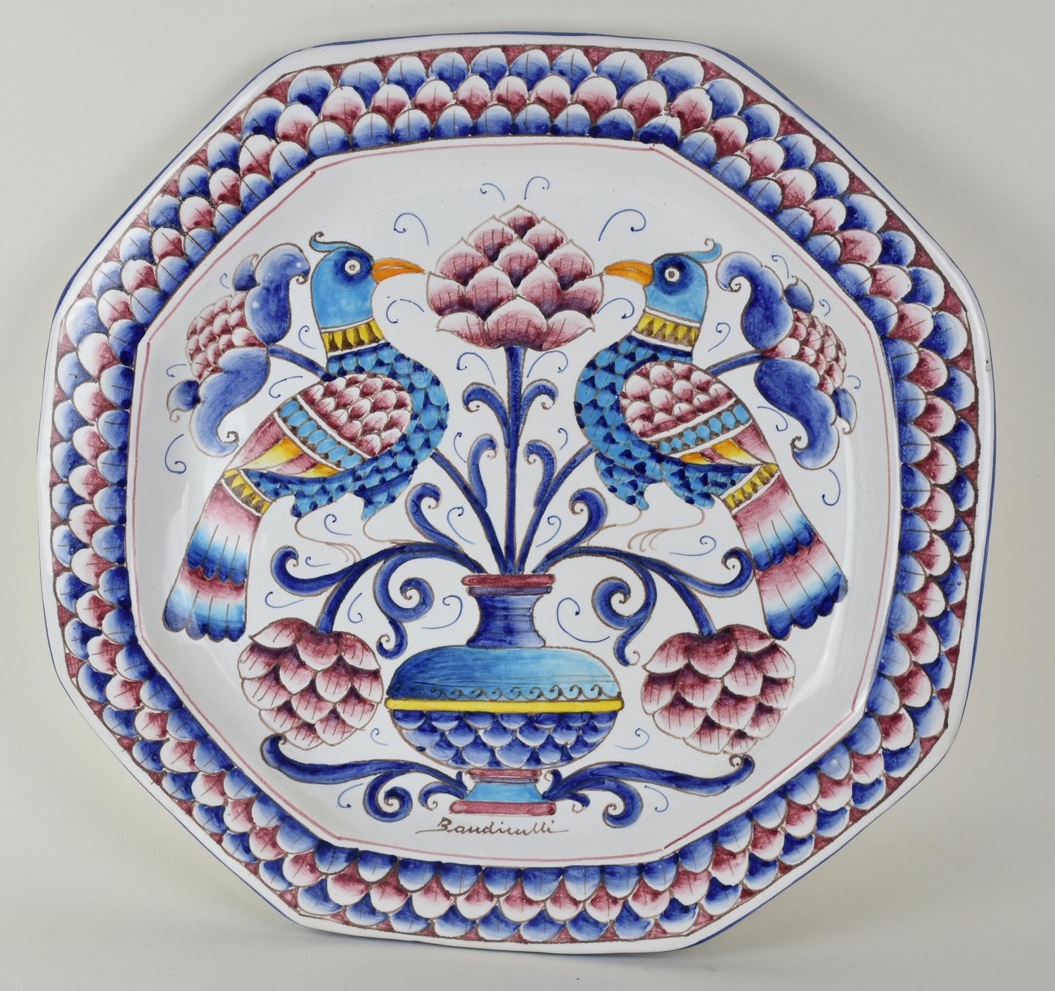 di forma ottagonale in ceramica decorata a firma Bandinelli