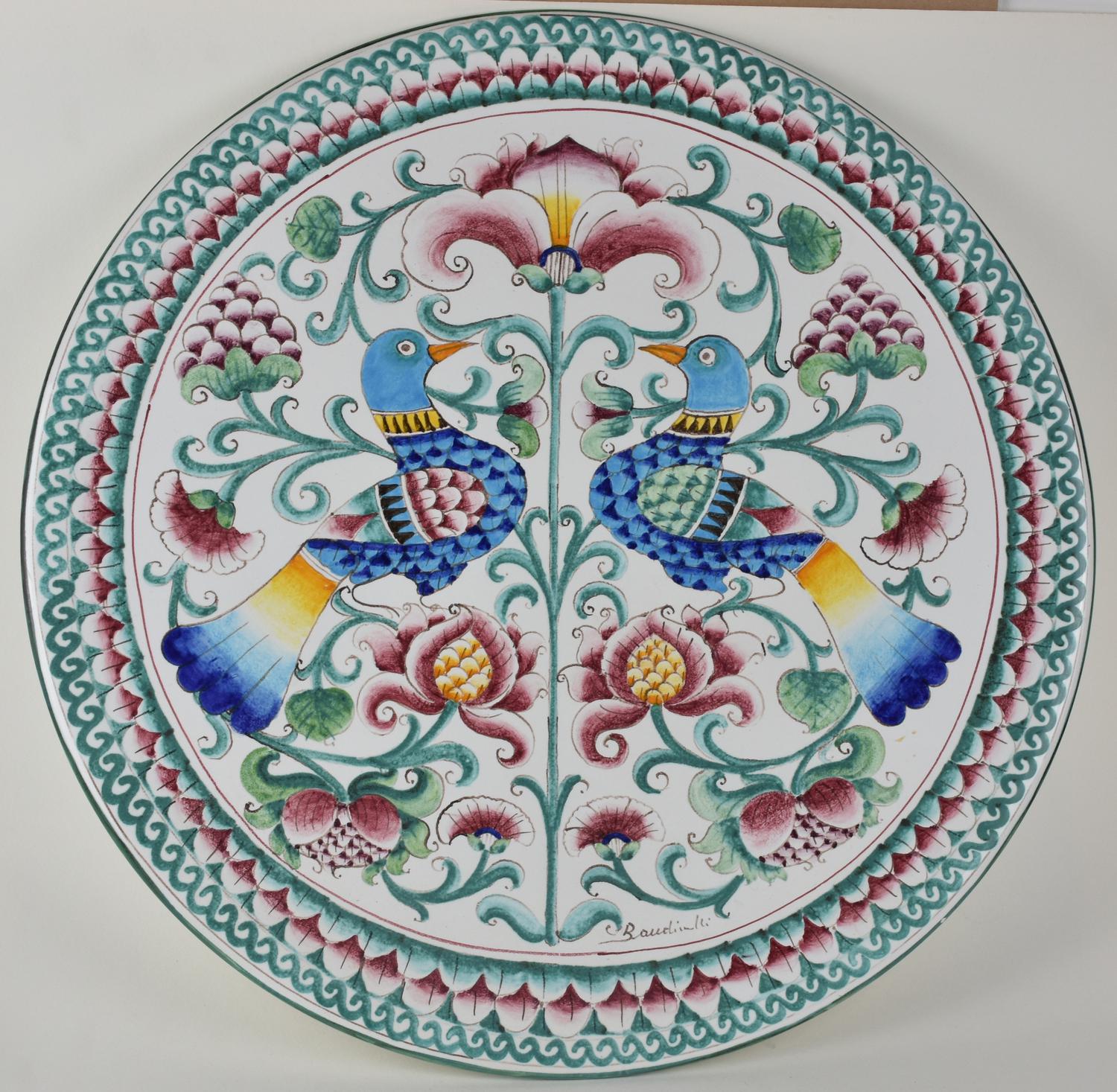 GRANDE PIATTO DA PARATA in ceramica decorata a firma Bandinelli diam cm 56