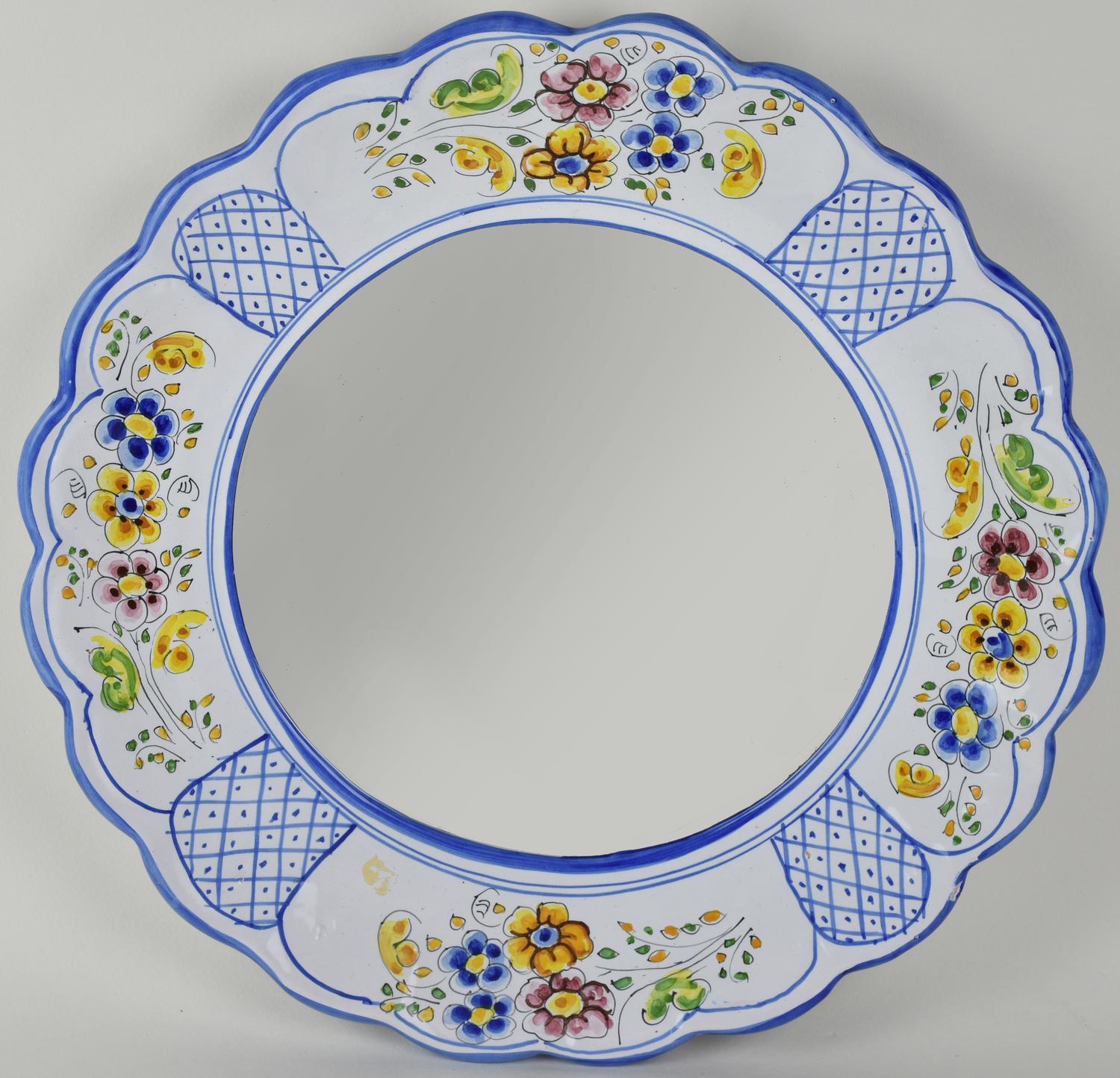 SPECCHIO in ceramica decorata Talavera, Spagna diam cm 41