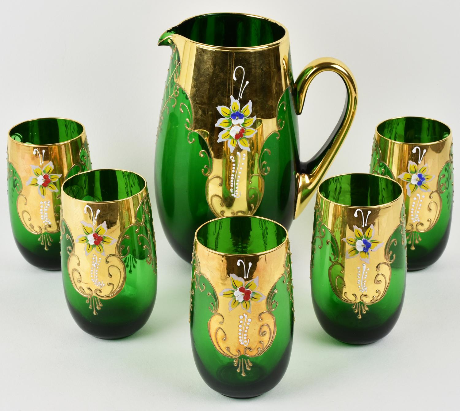 CARAFFA CON BICCHIERI in vetro soffiato con decorazioni in oro zecchino...